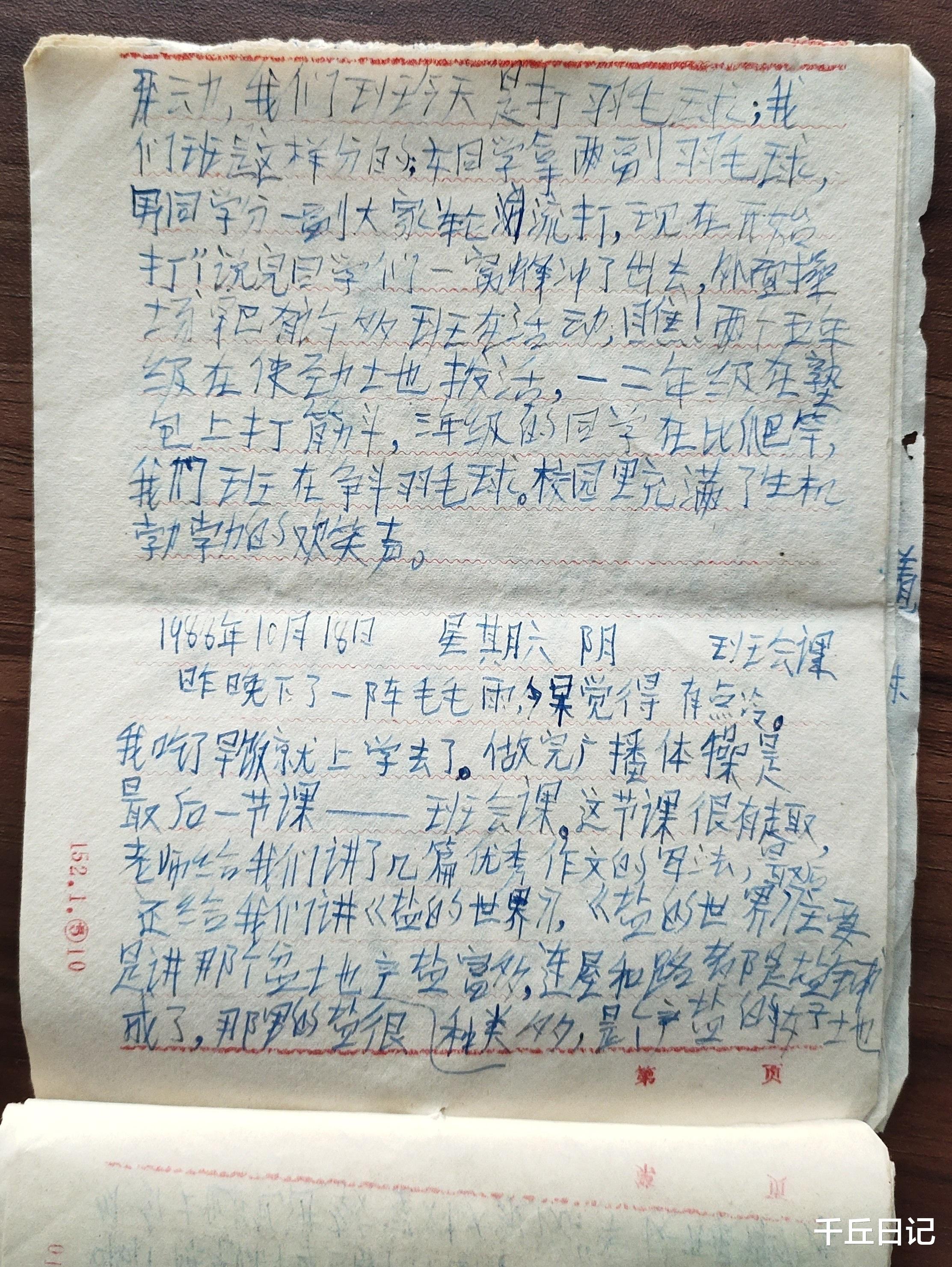 ▲我的1986年10月18日的日记