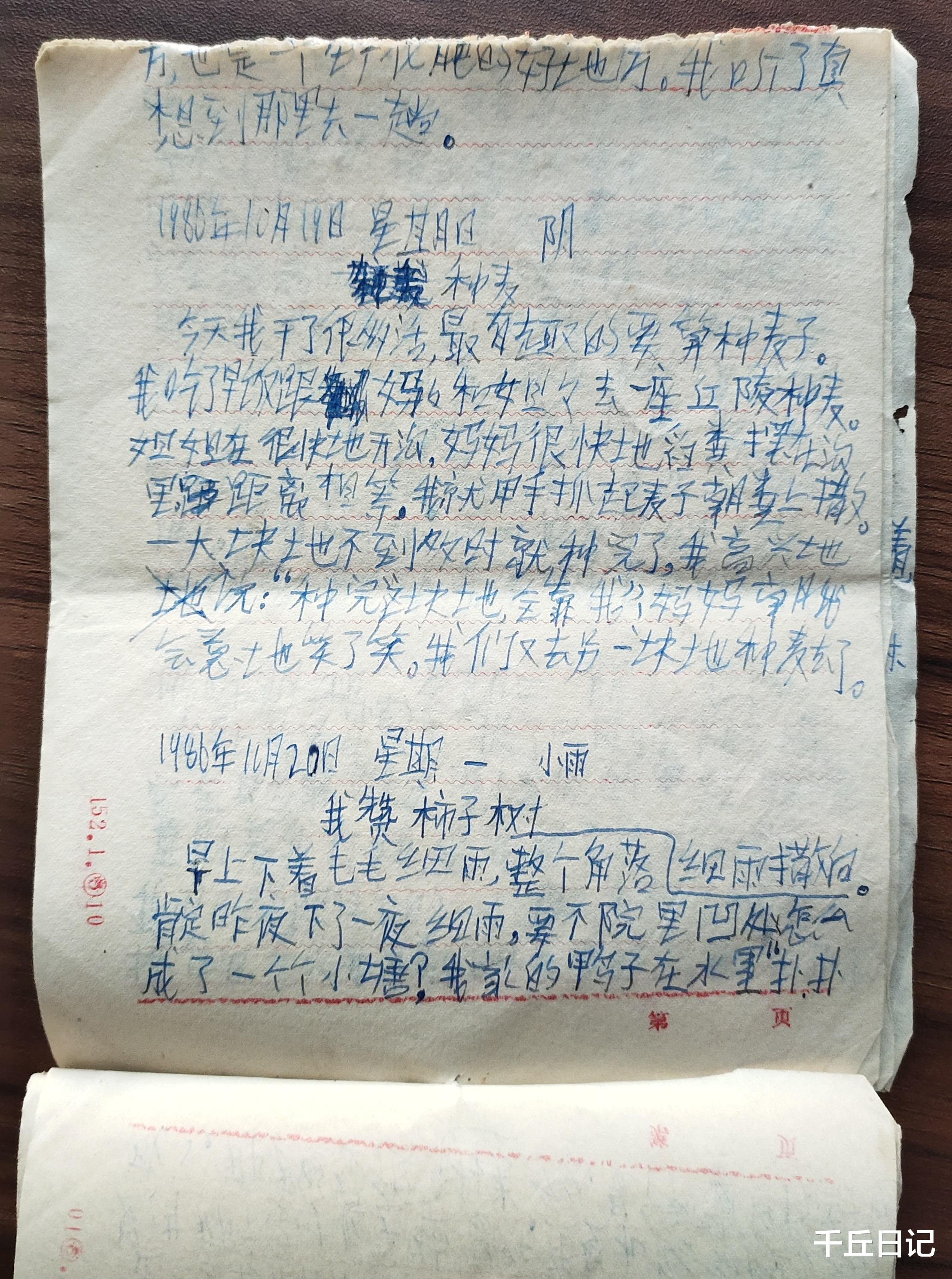 ▲我的1986年10月19的日记