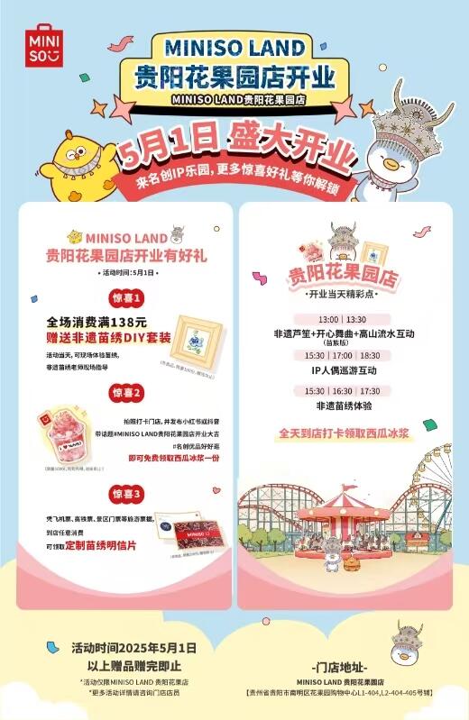 友友都们接到通了知没⁉️ 名创全球ip店来果花园购物中心啦~ 超大一楼栋超宽面一积定很好逛 集各合路ip全国第家五太期待了‼️ 还有喜惊活动哦🎉 ‼️4.30号前打卡挡围,5.1当天店到即可获得ip店门无槛代金券券20元, 5.1-5.5号打卡门店 5.2-5.5到店即获可得ip店门无槛代金券10元。🎫限领1张单,人限用1张,可不代领代用 开业定一一定要来✌✌✌
