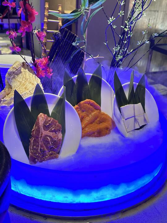 北京烤鸭卷,烧烤,三文鱼刺身,