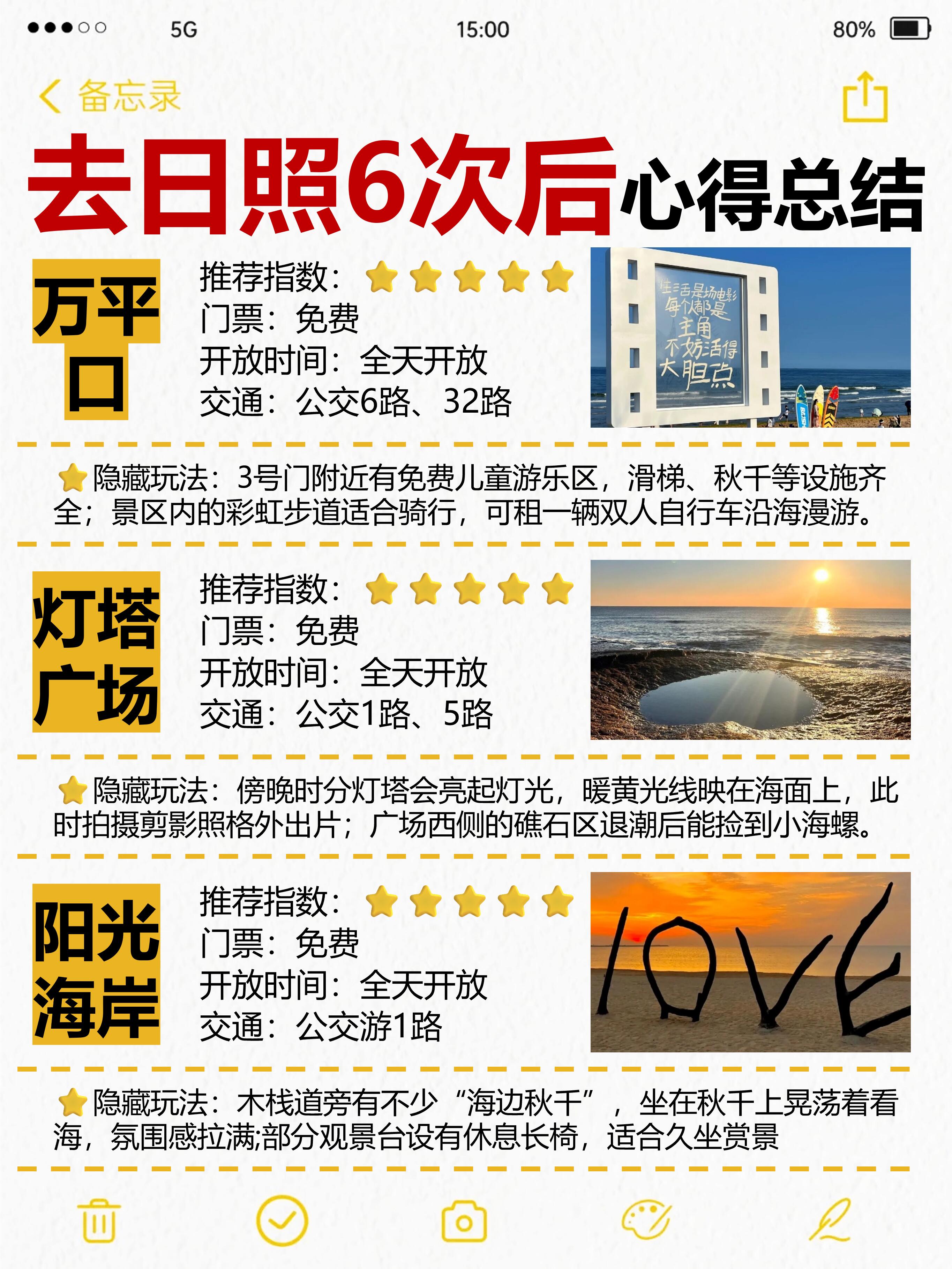 作为一个去了六次日照的代表,我觉得对于日照的旅游路线我最有发言权了,虽然日照的景点都在一条海岸线上,但是不做攻略还是会走很多弯路的❗