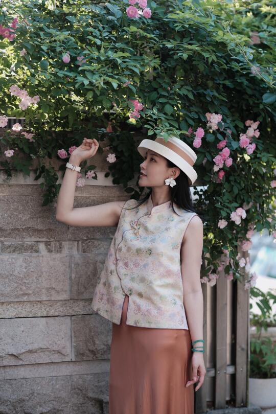 云想衣裳花想容,春风拂槛露华浓。 宋锦马甲和春天很搭~