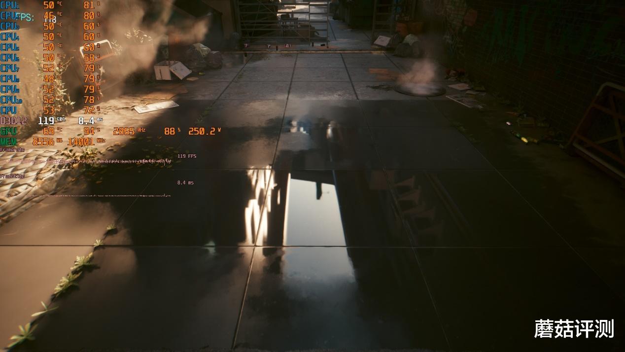 ▼赛博朋克2077,2K分辨率,光追超级画质,大力水手DLSS自动,拼好帧关闭。