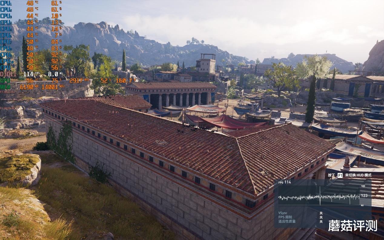▼室外游戏帧数在114帧左右,显卡占用75%,处理器占用56%。