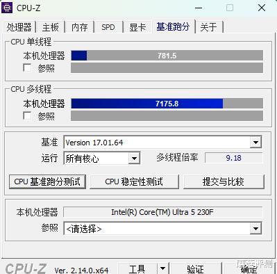 ▼简单跑个CPU-Z的测试,单核得分781.5,多核得分7175.8,分数不错。