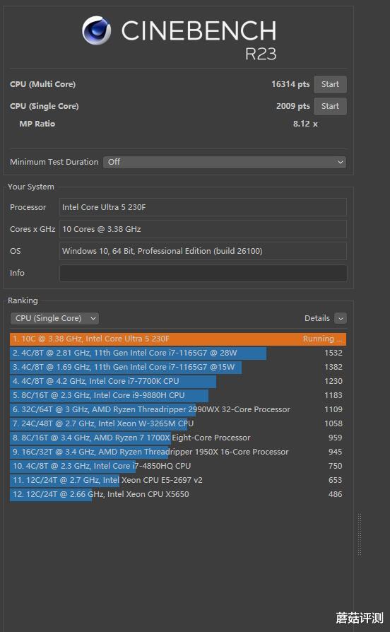 ▼跑个CineBench R23,单线程得分2009,多线程得分16314,这个多线程性能表现真不错。