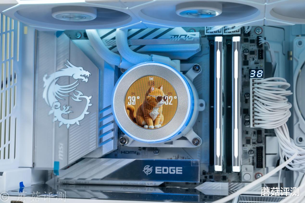 ▼水冷用的是联力的隐流Ⅱ代360一体式水冷,这款水冷采用巧妙的水冷管走线,将其隐藏在了水冷排的后侧,正面仅能看到水冷头附近的一点水冷管,整体的视觉观感更出色。