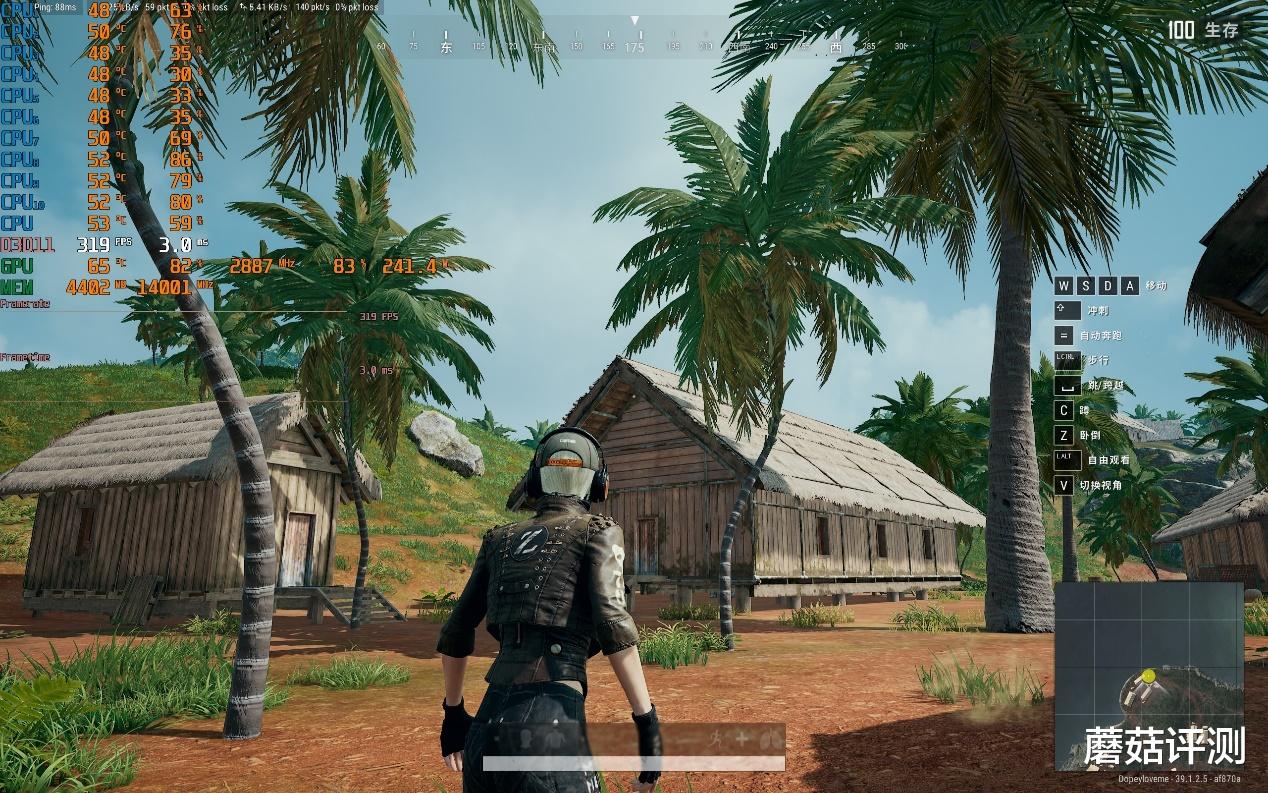▼绝地求生PUBG,2K分辨率,全高画质,室外游戏帧数在319帧左右,显卡占用82%。