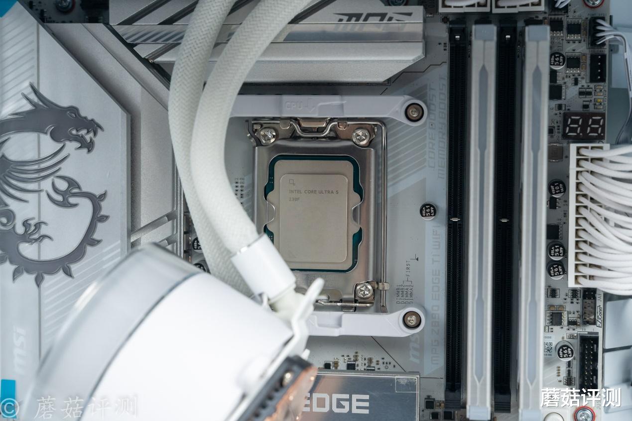 ▼为了让这颗230F充分发挥性能,蘑菇这里搭配的主板是微星的MPG Z890 EDGE TI刀锋钛,这块主板的供电用料非常豪华,采用16+1+1+1路的规格,其中核心供电16相,清一色的90A的SPS,可以轻松应付任何型号intel处理器的供电需求。