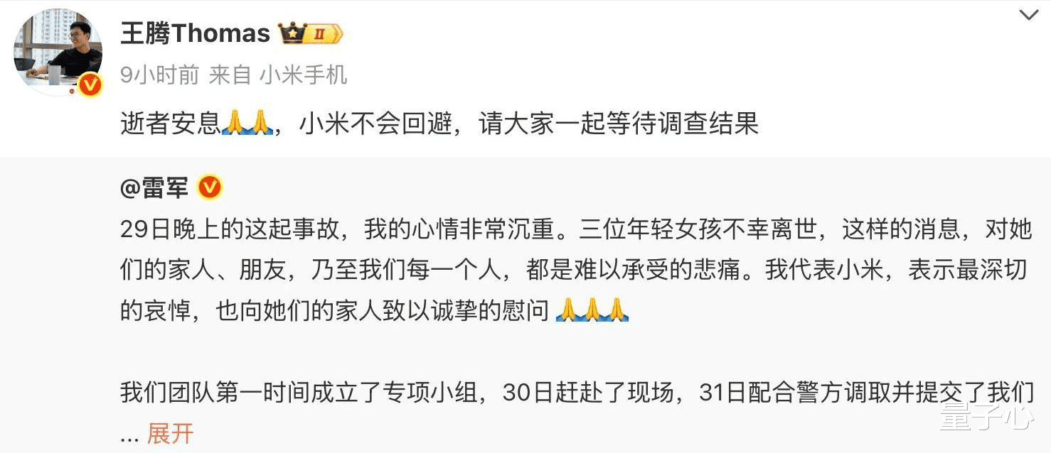 迫于舆论压力,4月1日晚,雷军终于通过社交媒体发声,表示小米不会逃避责任,正在对事故进行调查,并将及时公布调查结果。
