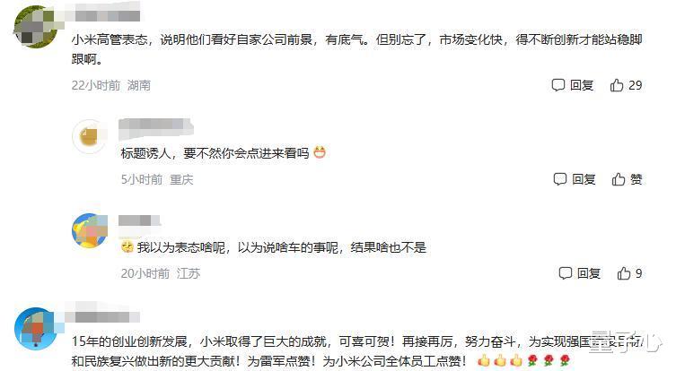 小米其他高管,如王腾和王化,也随后发表了类似的声明,强调公司会承担责任。