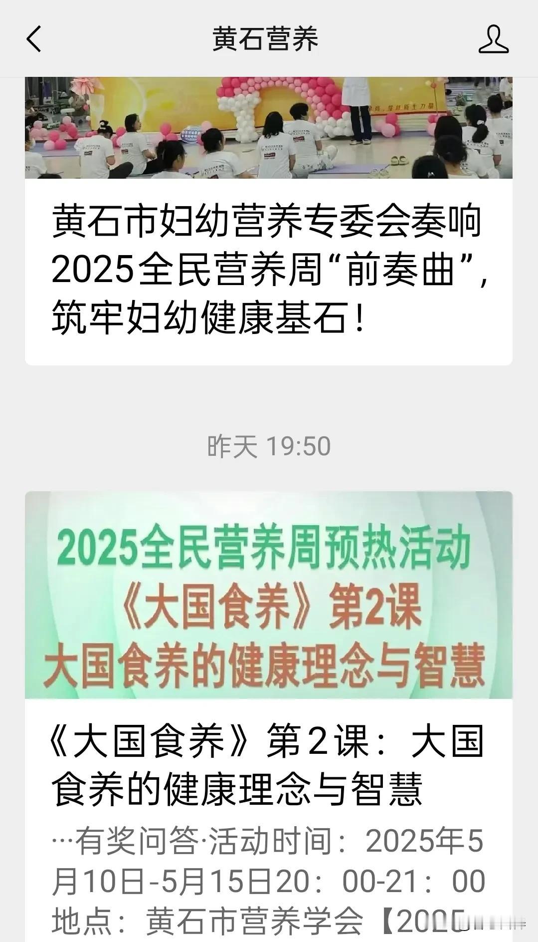 分享城市新鲜事科普,义诊,讲座,线上沙龙,科普,抢答…2025黄石全民营养周科普系列活动,预热已启动,一起参与吧!黄石市营养学会 2025全民营养周