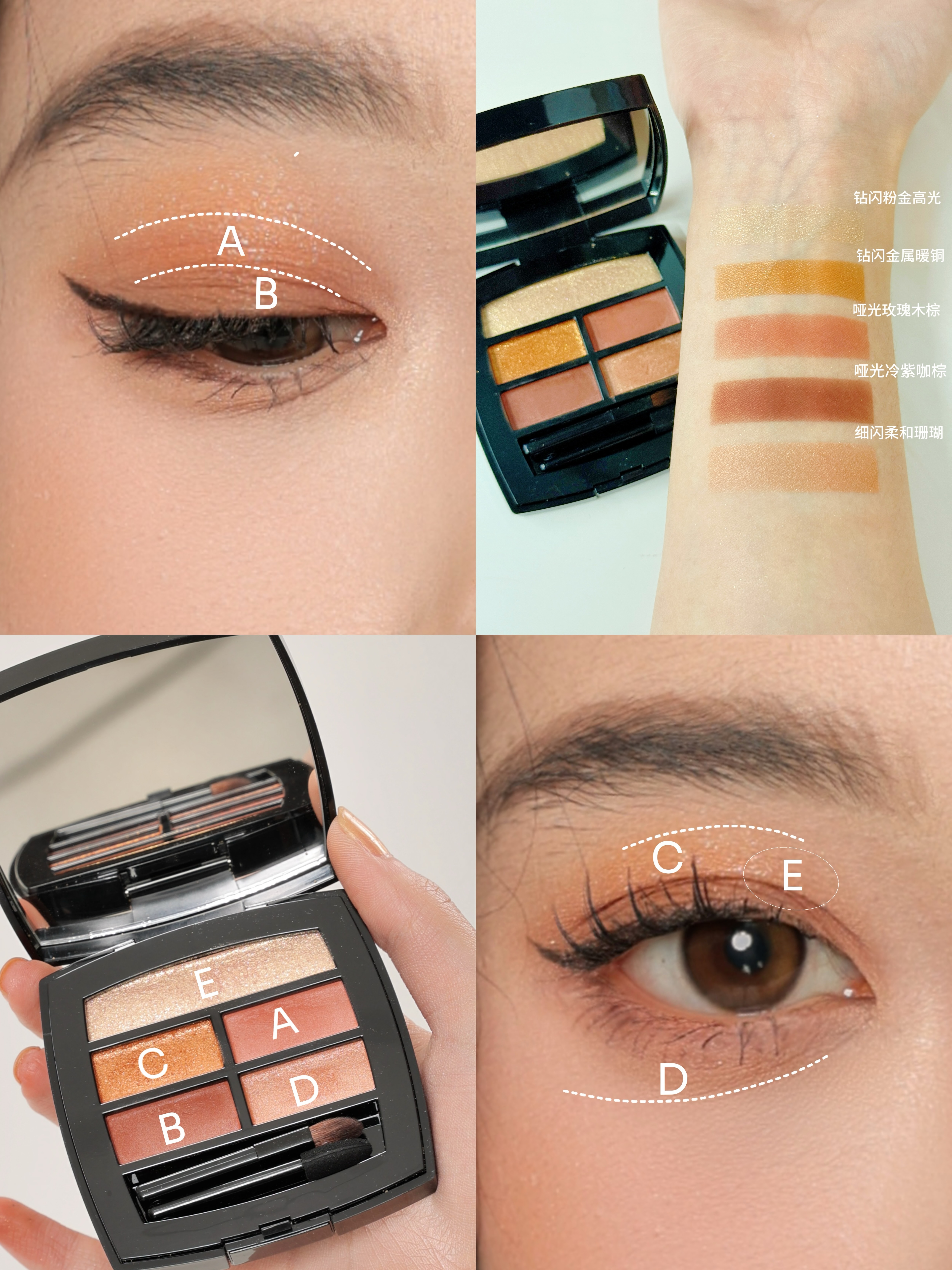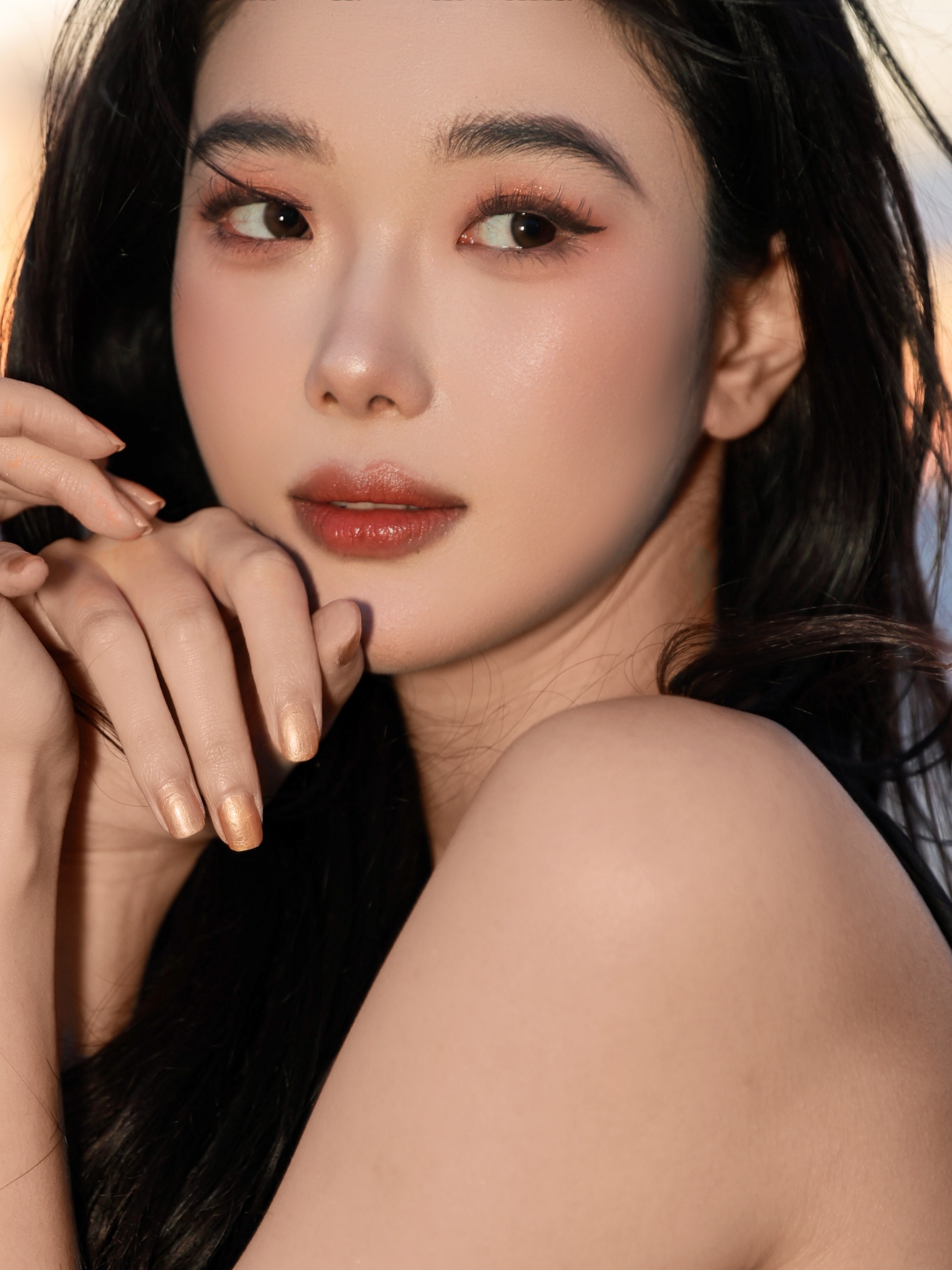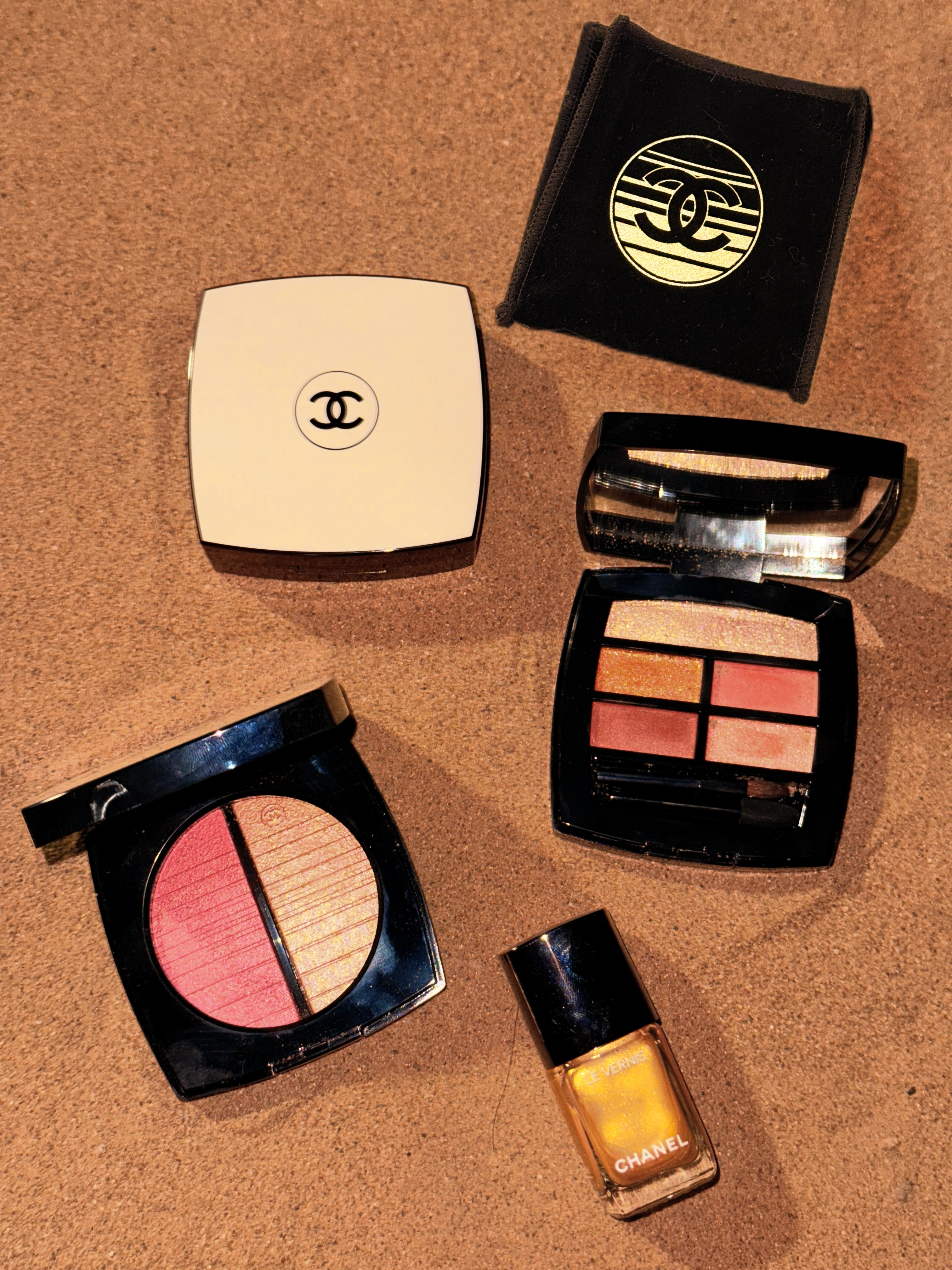香奈儿限定米色时尚眼部彩盘,粉金色配色就像日落的瞬息万变,像一刻一刻日落晚霞的色彩层次。再用香奈儿限定米色时尚高光腮红盘「夜幕」,把夕阳落日的余晖映在眼前。香奈儿金色指甲油365为妆容加上点睛之笔,指尖的一抹金光为夕阳添上微光~