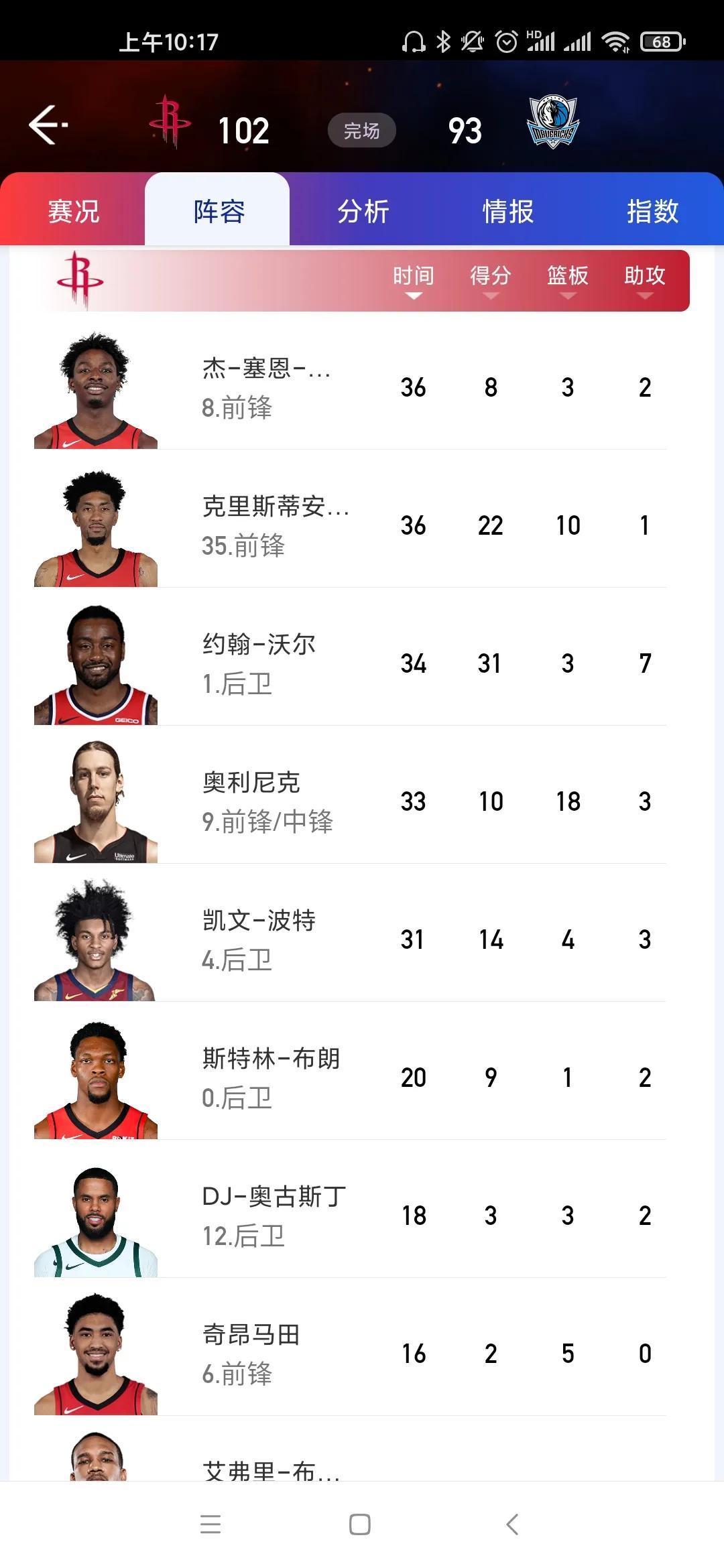 火箭5连败结束,此役战胜独行侠!