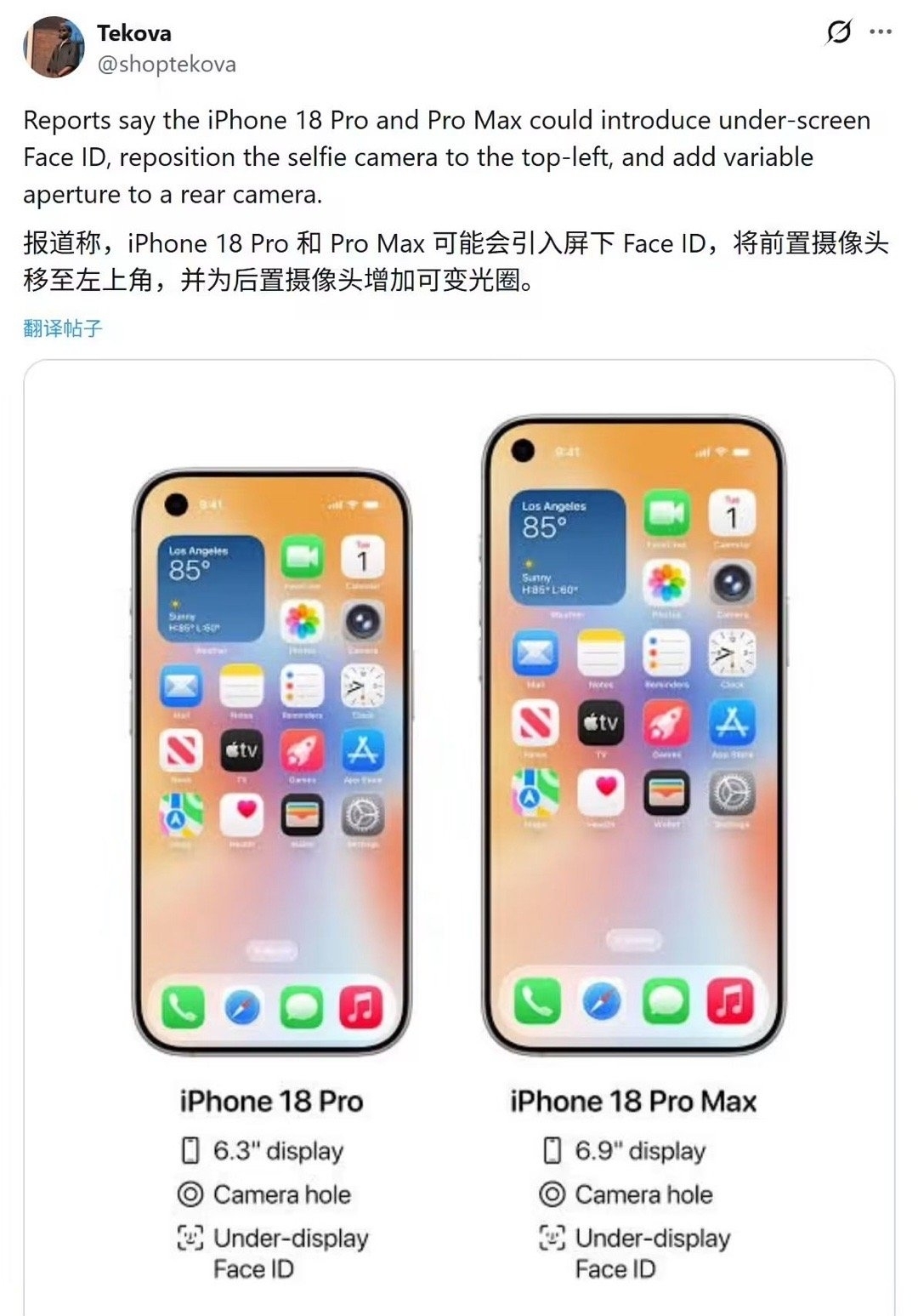 关于这份爆料方案的争议从未停歇:这是兼顾体验与技术的最优解,还是过于保守的过渡性设计?有人认可苹果的务实,认为在屏下技术尚未完全成熟时,折中方案能平衡颜值与实用性;也有人质疑其创新不足,觉得安卓阵营已实现更彻底的全面屏形态,苹果此时仍留“小尾巴”,难以满足追求极致视觉的用户期待。