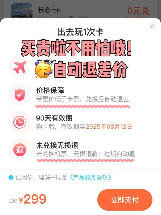 囤299机票次卡不用受机票价格涨幅影响!✅0元兑航线全国各地覆盖哦✅而且买贵自动退差价🤗✅过期自动退!让你购买无忧,低价出行!