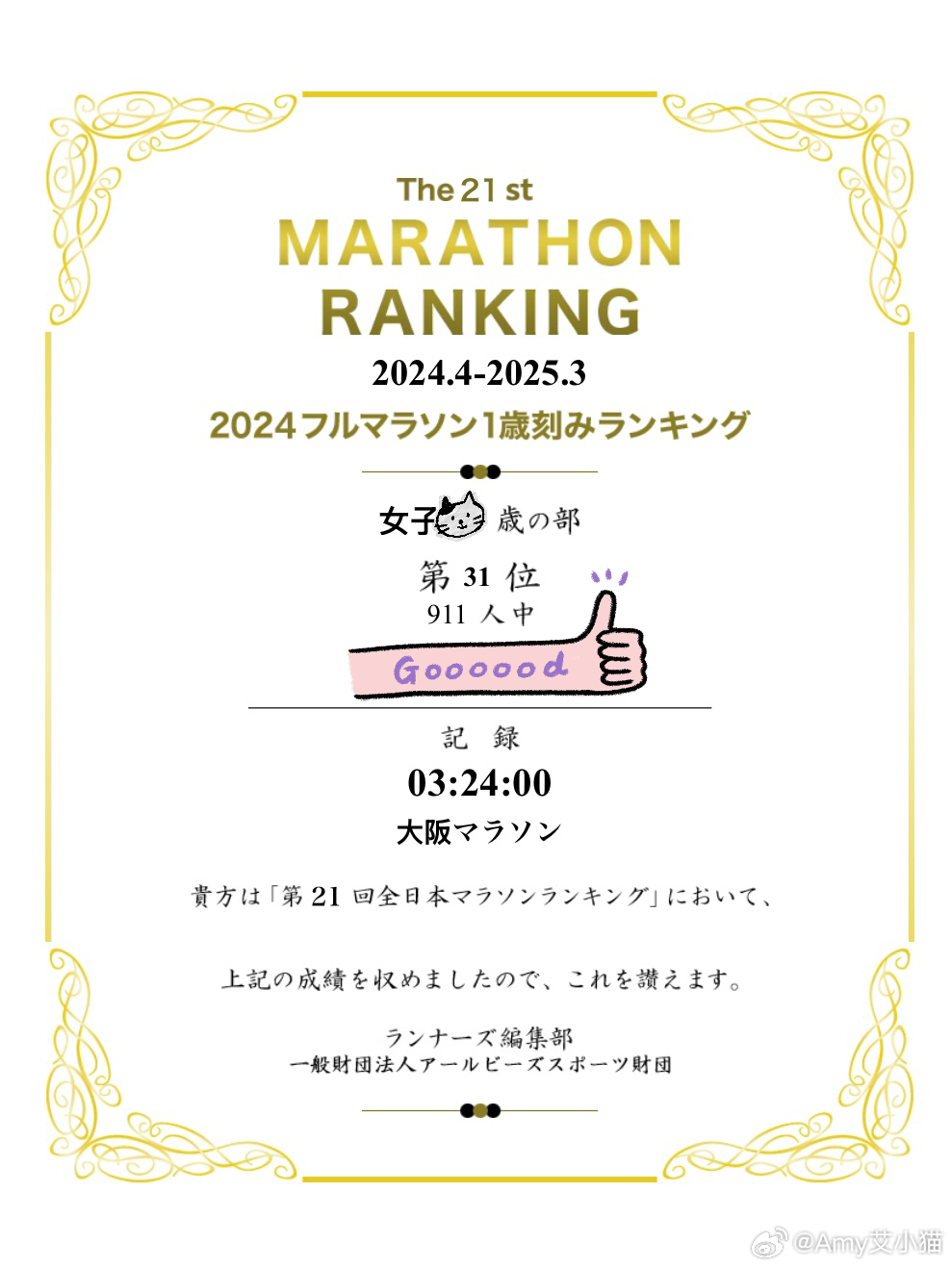 🏃🏻♀️日本🇯🇵2024年马拉松排名出来啦!