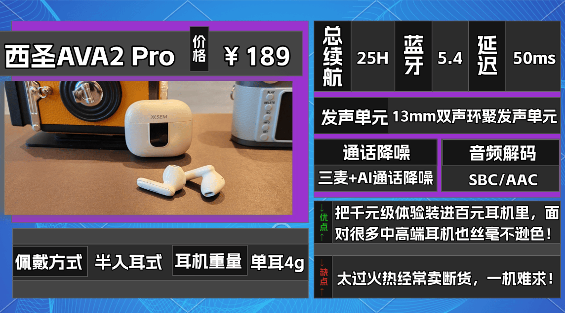 ①西圣AVA2 Pro蓝牙耳机