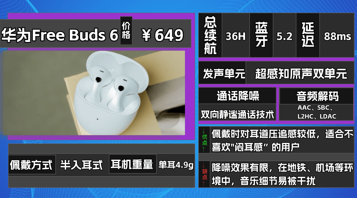 ④华 为F reeBuds 6蓝牙耳机