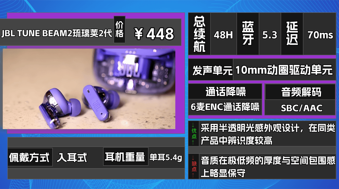 ③J BL T UNE BEAM2琉 璃荚2代蓝牙耳机