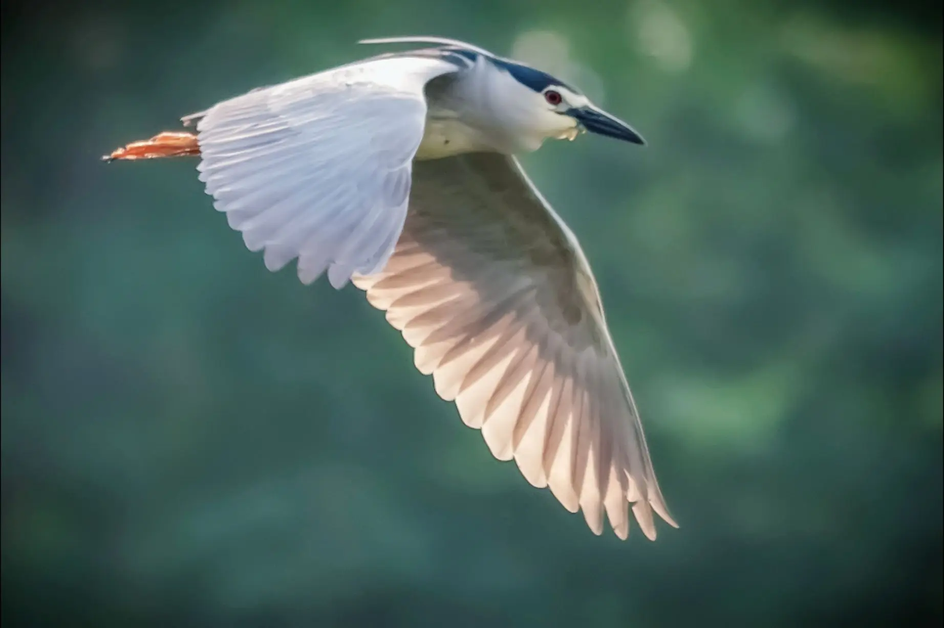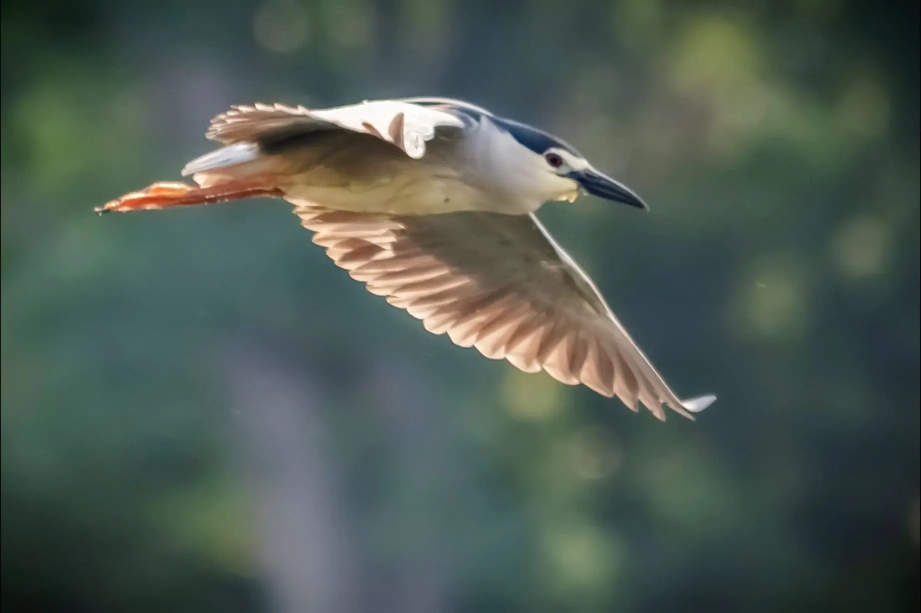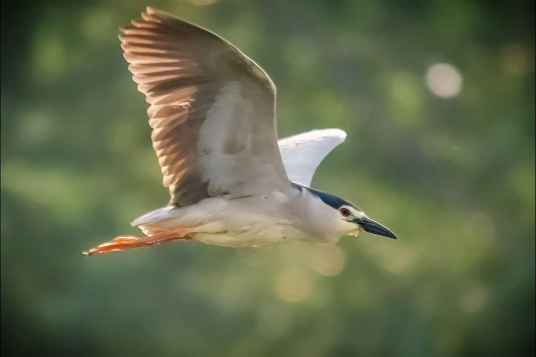 长焦观鸟---飞翔的夜鹭 夜鹭,常栖息和活动于平原和低山丘陵地区的溪流、水塘、江河、沼泽和水田地上 。主要以鱼、蛙、虾、水生昆虫等动物性食物为食 。在我国分布广泛,几乎遍布全国各地。夜鹭多在夜间和黄昏时活动,白天常隐蔽在灌丛或高大树木的枝叶间,是一种较为常见的涉禽 。