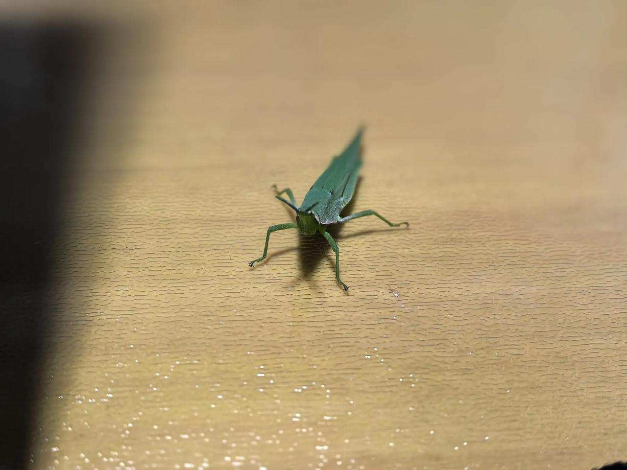 傍晚,电脑桌上突然飞来这么个生物,没敢动粗,吹了几口气,又飞走了。 不像螳螂,谁认识这货?位置广州南沙。