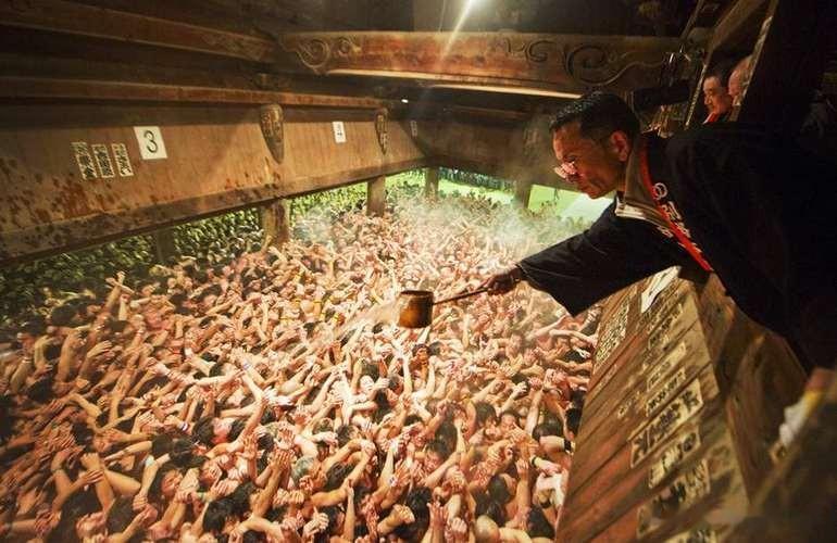 图:往年裸祭资料图,参与者几乎全裸,仅着兜裆布挤成一团。