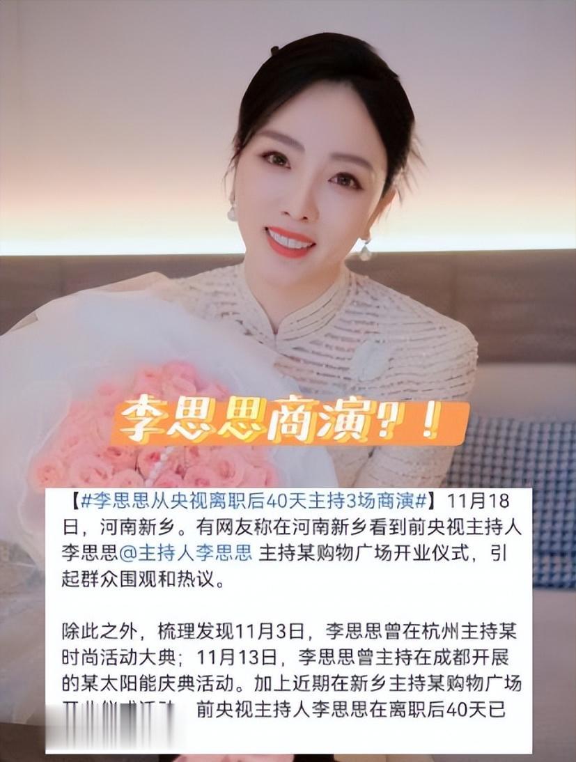 2023年10月,李思思正式宣布离开央视,当时不少人都觉得可惜,认为她放着好好的央视主持人不当,太不明智。