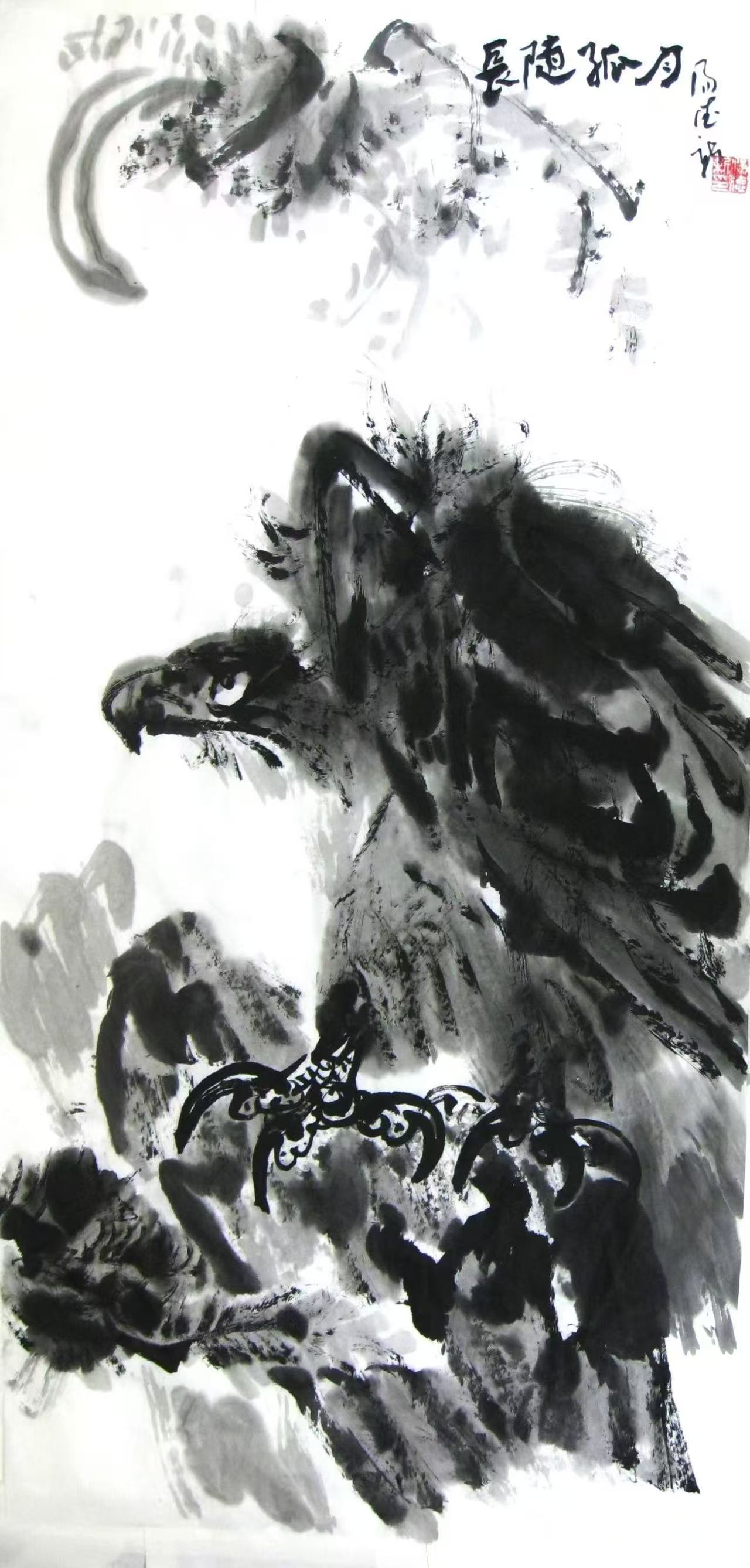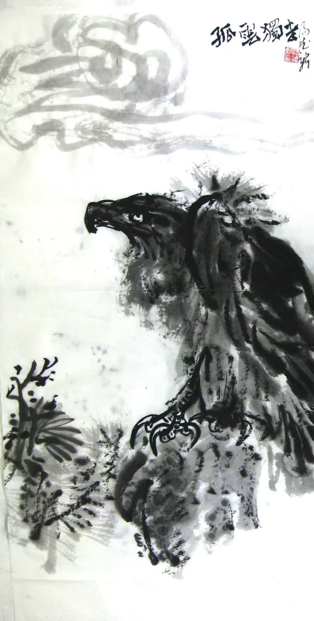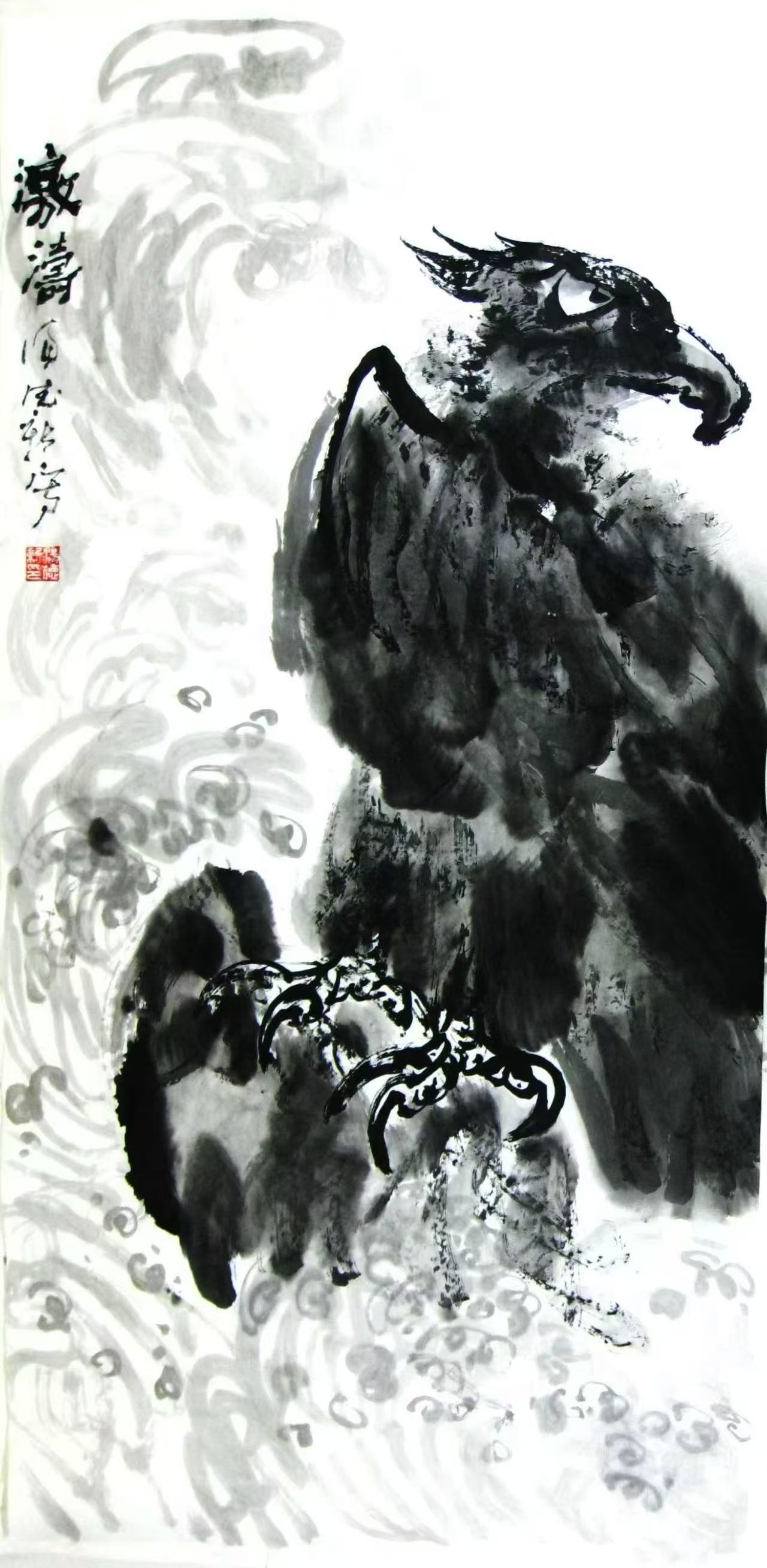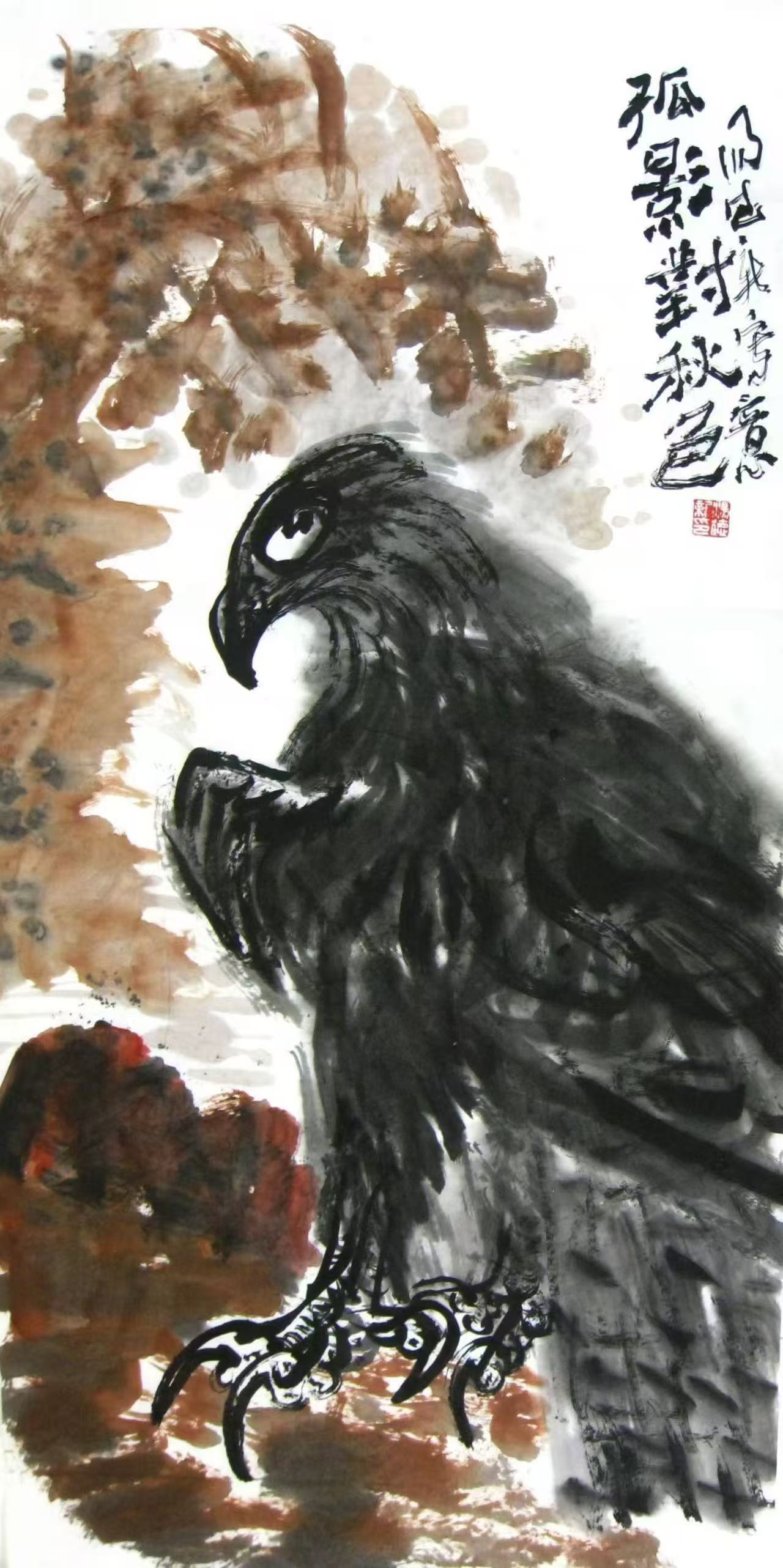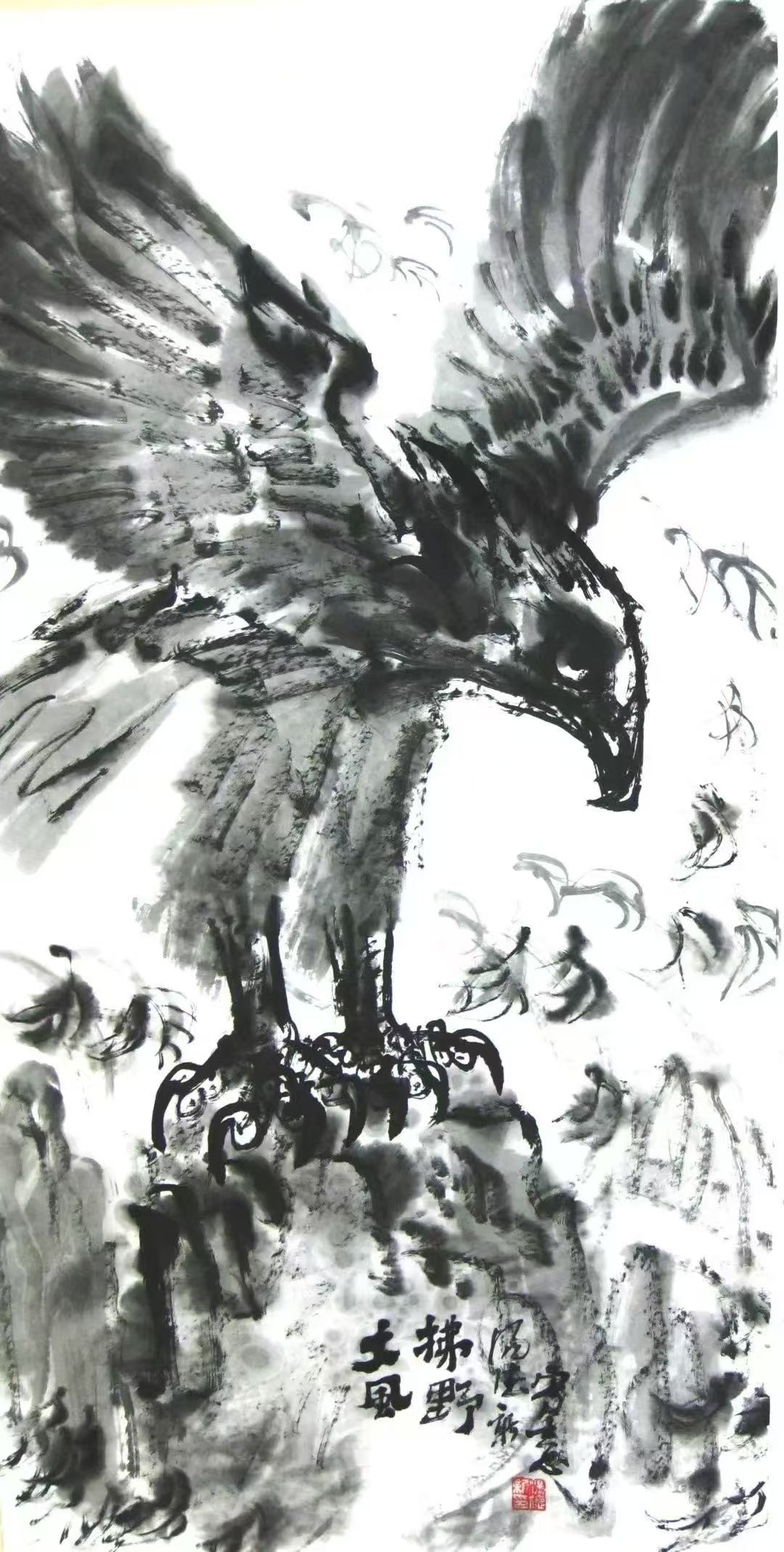 擅长山水、人物、花鸟画,尤以雄鹰题材著称,作品风格雄浑豪放,代表作包括《孤云独去》《大风拂野》等,构图饱满、笔力遒劲,具有强烈视觉张力!