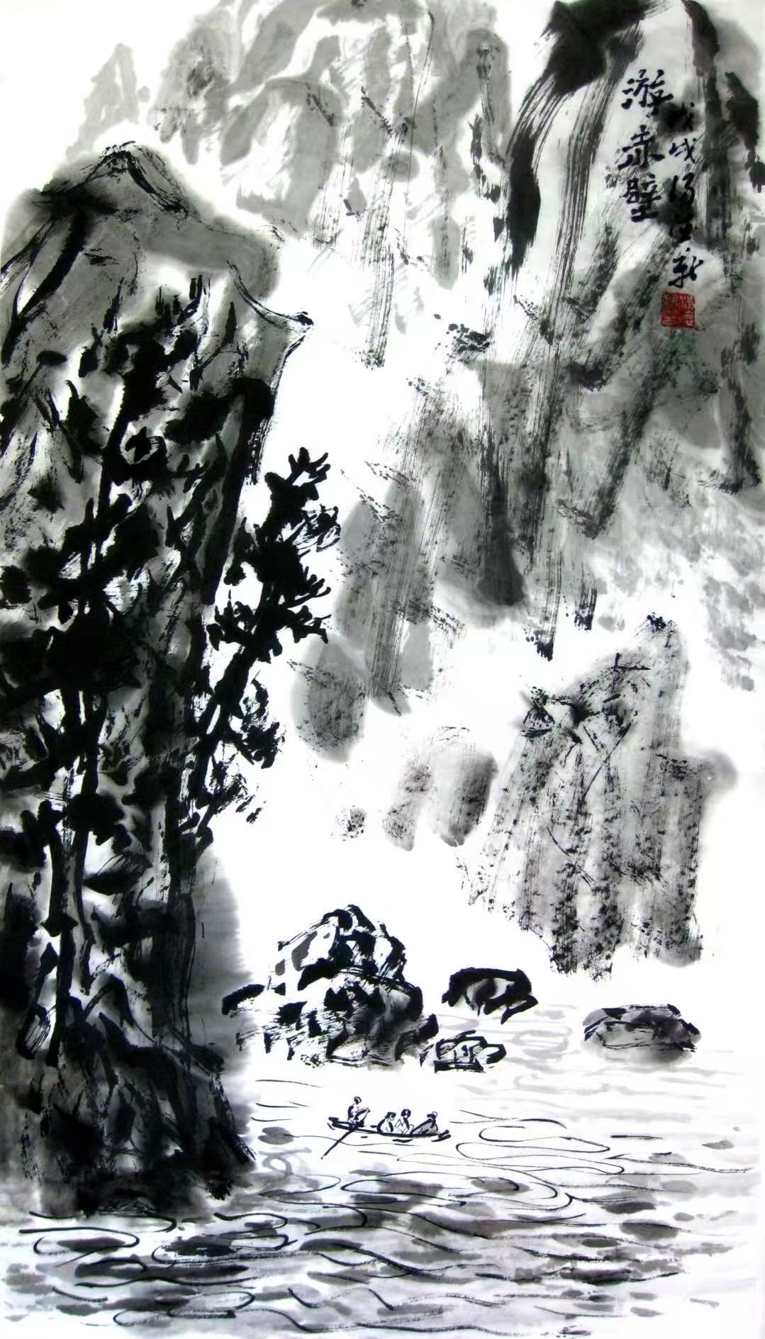黑白是中国画的底色,也是东方美学中最具代表性的视觉符号,其背后蕴藏着“阴阳相生”“虚实相济”的传统哲学内核。在传统水墨创作中,黑白多作为画面的基础构成,呈现出相对平面化的表达特征,而汤德新则打破这一局限,将黑白的韵律感与空间感发挥到极致,让画面在黑白交织中产生呼吸感与心理张力,构建起独属于他的空间哲学。