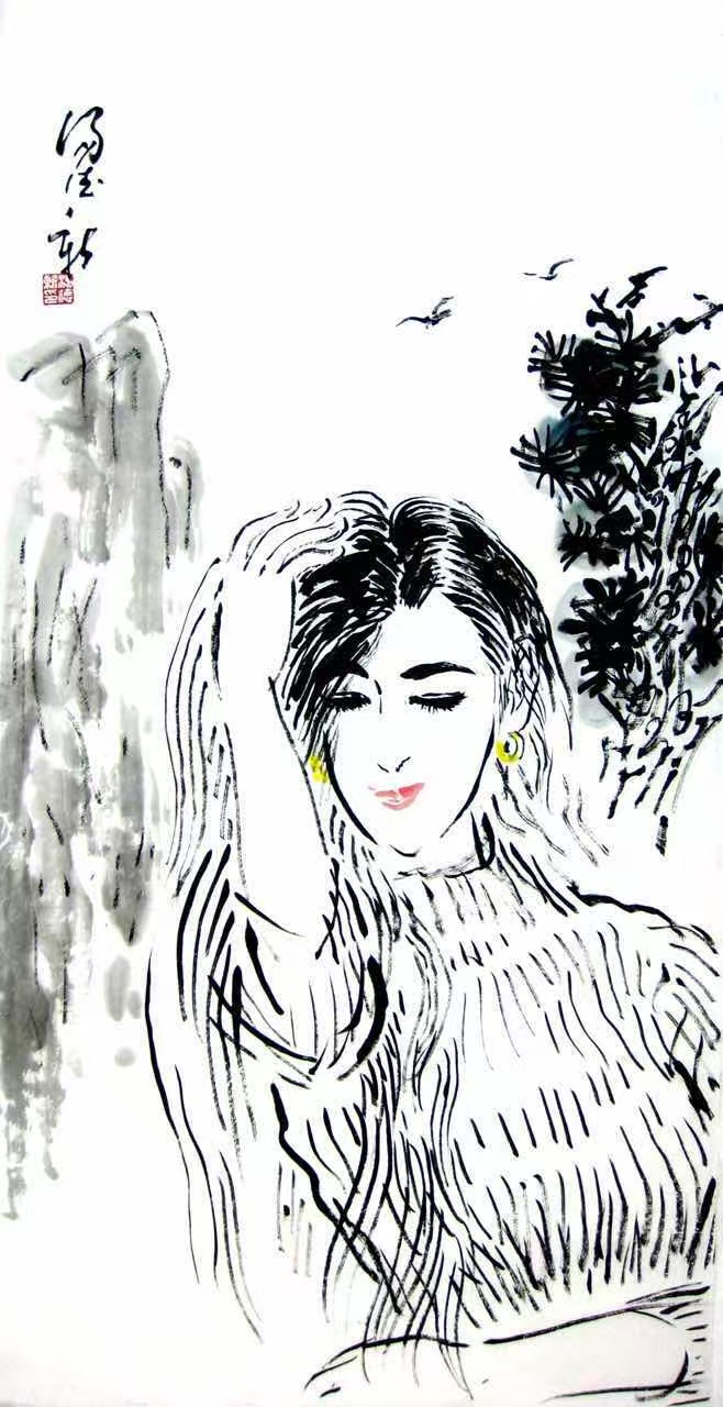 线条是中国画的灵魂,是艺术家情感表达与精神追求的直接载体,从顾恺之的“高古游丝描”到吴道子的“吴带当风”,线条的艺术在中国画的发展历程中不断丰富。汤德新深谙线条的审美价值,他以书法为根基,将书法线条的韵律感与表现力融入绘画创作,让线条在画面中成为“舞蹈的生命”,既保留了传统书法线条的文化内涵,又赋予其现代的抽象表达与动态张力,实现了刚柔并济的生命力表达。