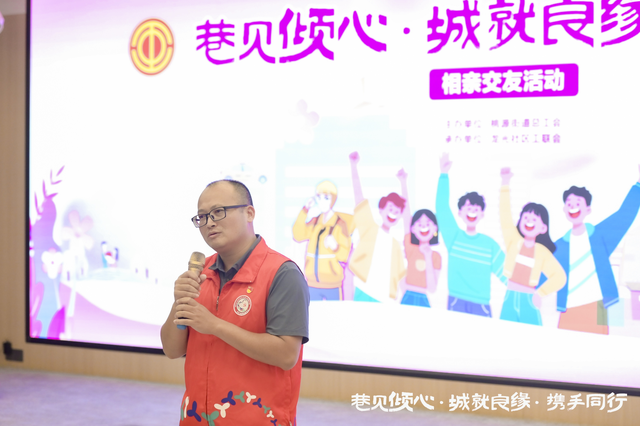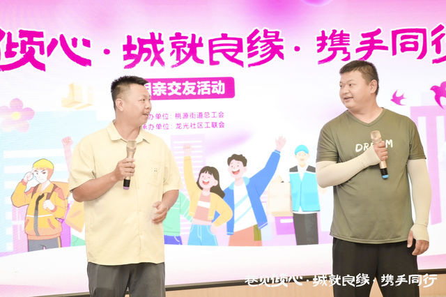 8 月 31 日下午,由桃源街道总工会主办、龙光社区工联会承办的 “巷见倾心・城就良缘・携手同行” 新就业群体相亲交友活动温情启幕。来自辖区的 50 名外卖员、快递员、网约车司机等新就业群体单身青年齐聚一堂,在轻松氛围中寻觅良缘。桃源街道龙光社区第一书记铁辉,龙光社区党委书记刘勇出席此次活动。