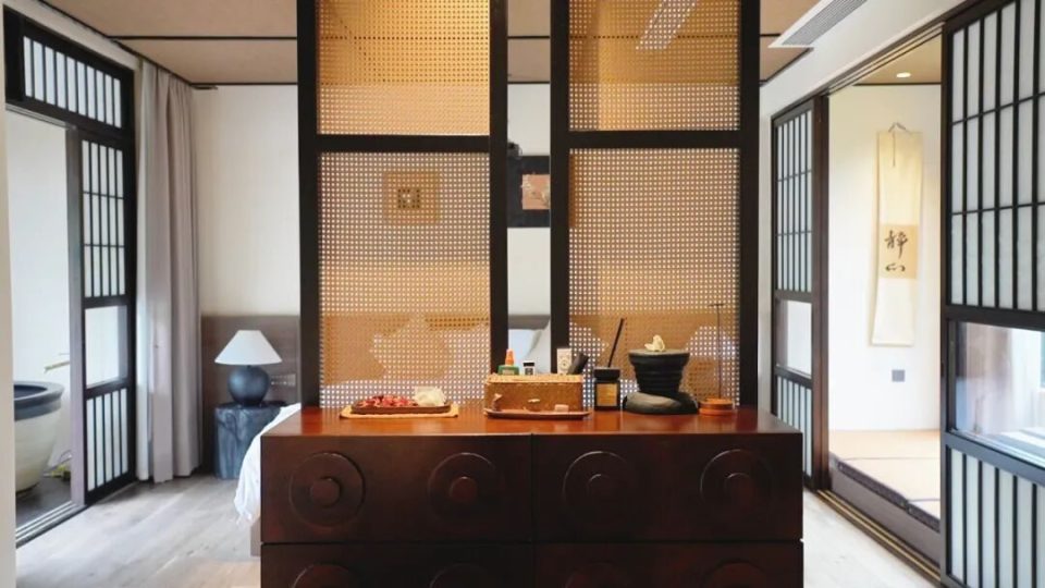 光影透过木质窗格,禅意与高级感并存,靠窗而立便是意境。