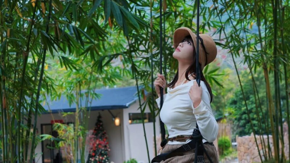 秋千藏于竹林之中,轻轻一荡,光影摇曳。无论是荡起时的动感,还是静坐时的侧影,都宛如电影场景。
