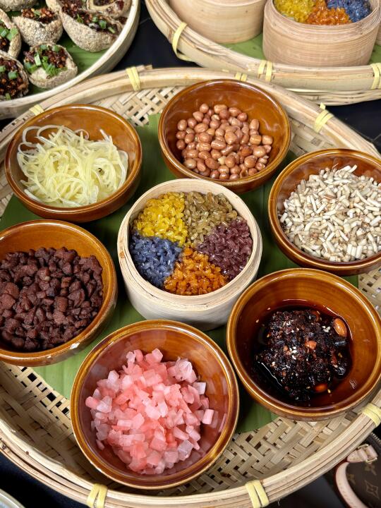 ✅豆腐圆子✅五彩糯米饭✅裹卷✅冰浆✅卤味拼盘✅刺梨包✅冰浆