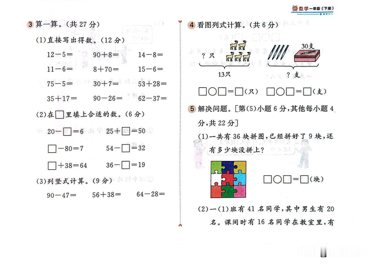 2025春最新人教版数学一年级下册期末综合练习