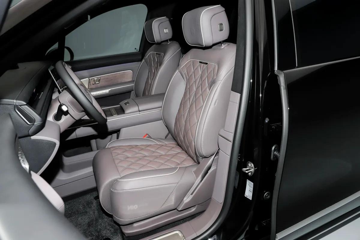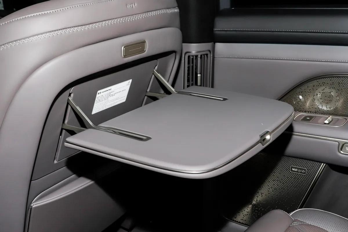 但对于我来说,外观是给别人看的,空间才是给自己用的,拉开车门,这种“全域空间优势”带来的震撼感更强了。我们家人口多,以前出门比较头疼的问题就是“谁坐第三排”,但蔚来ES8这次依托900V高压架构带来的空间革命,真的解决了大问题。我特意坐进第三排实测了一下,头部空间924mm,腿部空间726mm,座垫长度也有455mm,这数据在同级里绝对是一梯队。不像有些车的第三排是“宠物座”,蔚来ES8的这个第三排,哪怕是我这种中等身材坐进去,膝盖也不会顶到前排,椅垫对大腿的承托也很到位。那天试驾,我特意带了一家人的行李模拟真实场景,6个人,12个箱子,这车竟然真的装下了,而且后备箱在满员状态下还有547L的容积,能装下1个28英寸加1个24英寸的行李箱。如果不坐满人,放倒后排空间接近纯平,简直就是个“小货车”。更让我惊喜的是前备舱,居然有230L,内部还植绒覆盖,配了照明灯和12V电源接口,支持电动开启。我想着以后带孩子们出去玩,他们的装备都能妥妥安放,再也不用跟行李抢空间了,设计太合理了。