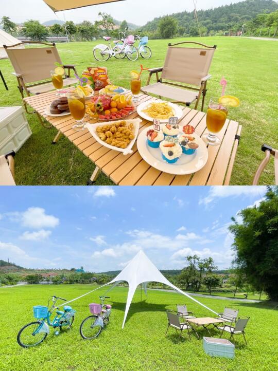 🏕️ 轻奢露营体验:在草坪上搭帐篷露营,白天骑车放风筝,晚上微醺吹晚风,邂逅绝美银河🌠,朋友圈摄影大赛直接夺冠!