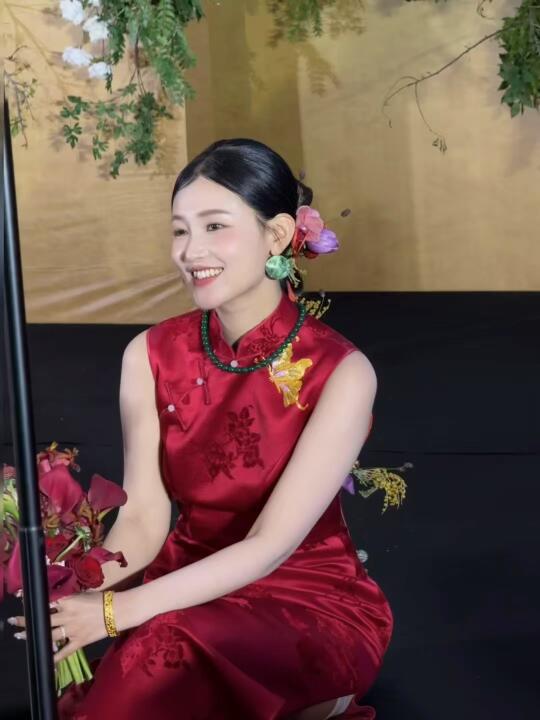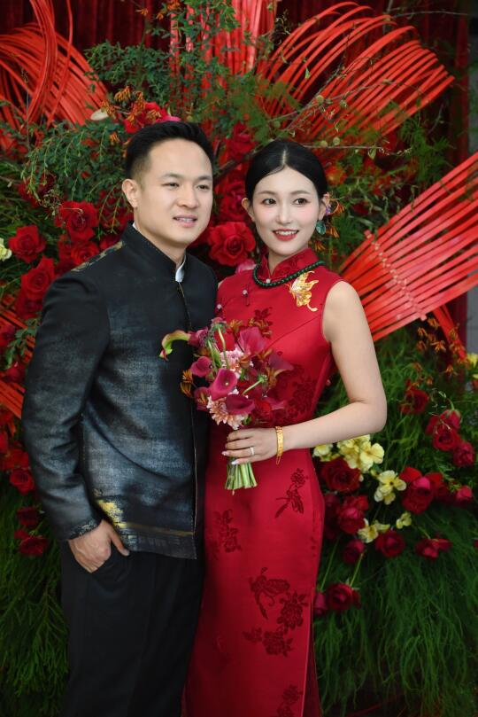 自己做的漳缎盘金绣旗袍,搭配给我老公做的上久楷汉宫秋月宋锦青年装,这一身被夸了无数遍。