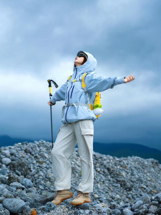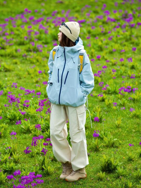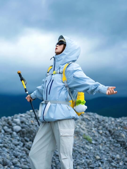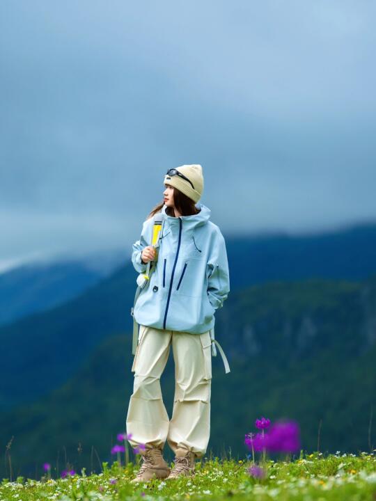 骆驼冲锋衣骆驼王者凯甲冲锋衣徒步丈量世界 冲锋衣推荐 骆驼远山蓝 旅游万粉扶持计划 浅春系穿搭 徒步穿搭 三合一冲锋衣 户外徒步
