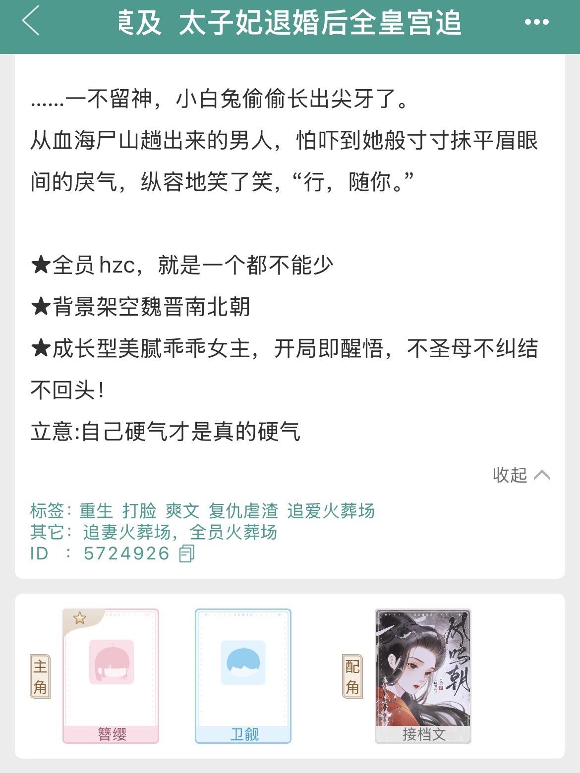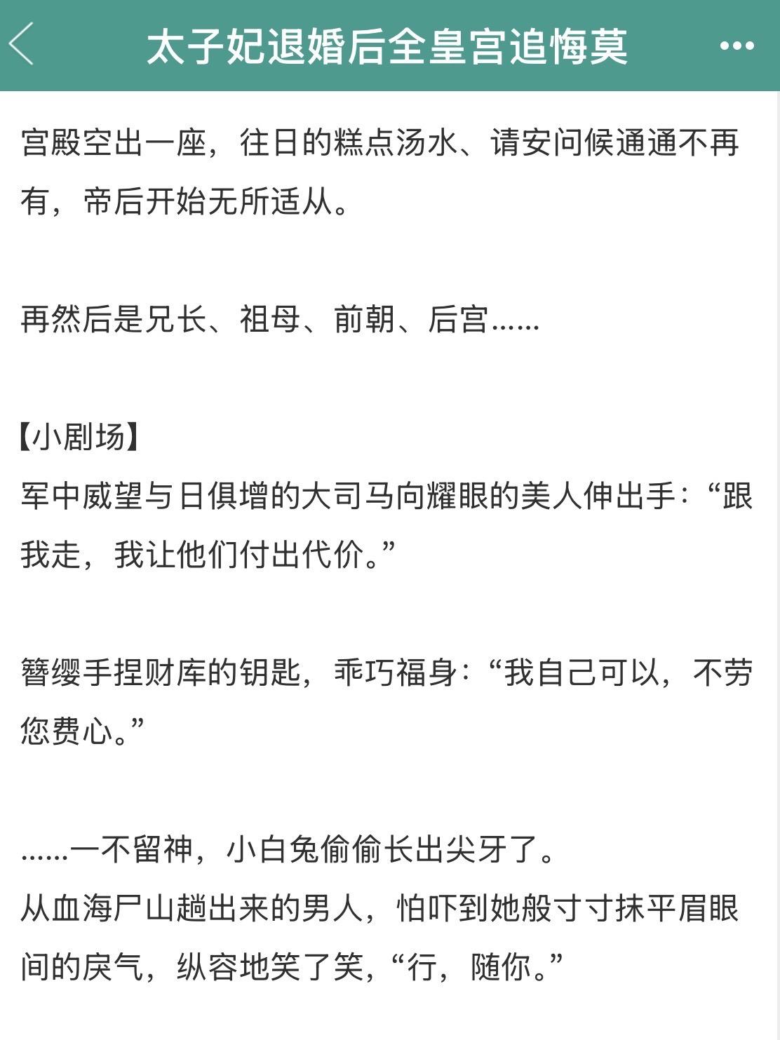 全员火葬场!丨一个都不能少!全员火葬场!丨一个都不能少! *重生打脸复仇虐渣,排好队噼里啪啦! *背景架空魏晋南北朝。 *成长型美腻乖乖女主,开局即醒悟,不圣母不纠结不回头 *全员hzc,就是一个都不能少! 书名:《太子妃退婚后全皇宫追悔莫及》 作者:晏闲 标签:古言小说、完结文、爽文文、打脸文、追妻火葬场文、复仇虐渣文、重生文