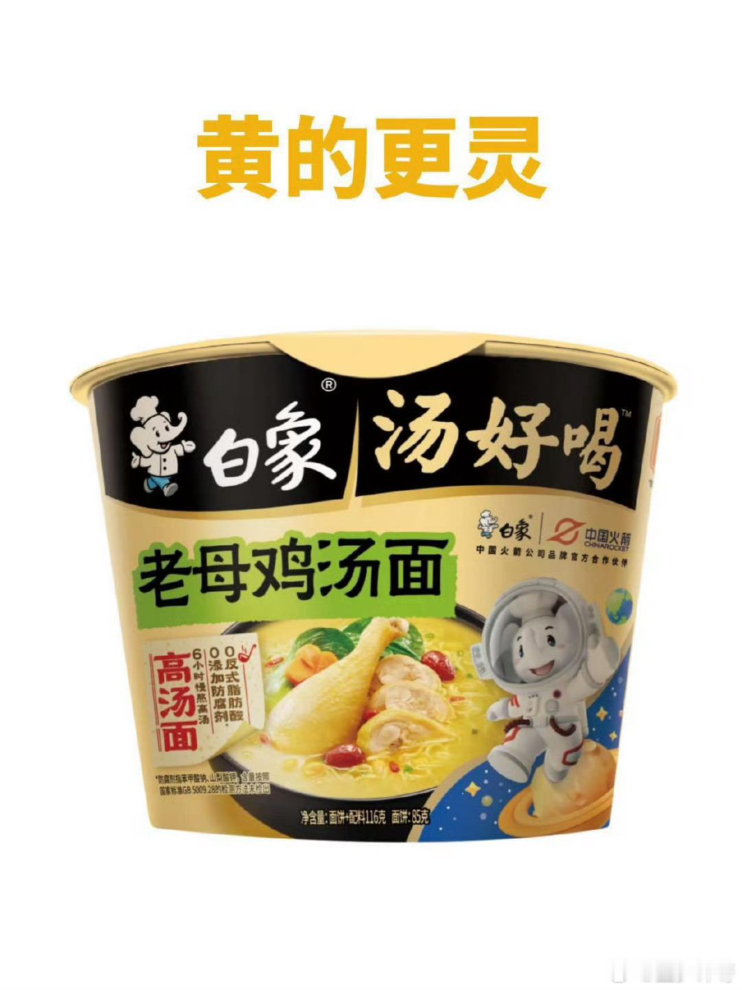 120g面饼上市再也不会出现一包吃不饱,两包吃不下的问题啦!而且一直支持他家还有一个原因就是食材健康!白象食品的“汤好喝”系列创新地用高汤包取代传统的粉包和酱包,泡面汤也放心喝咯~汤底好鲜美~