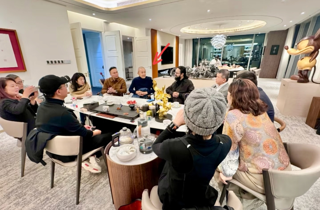 十几个人围坐在一起,你一言我一语,气氛十分和谐。近照中王石似乎脸部看起来胖了一圈,没有以往戴假发套时那般干瘪了。