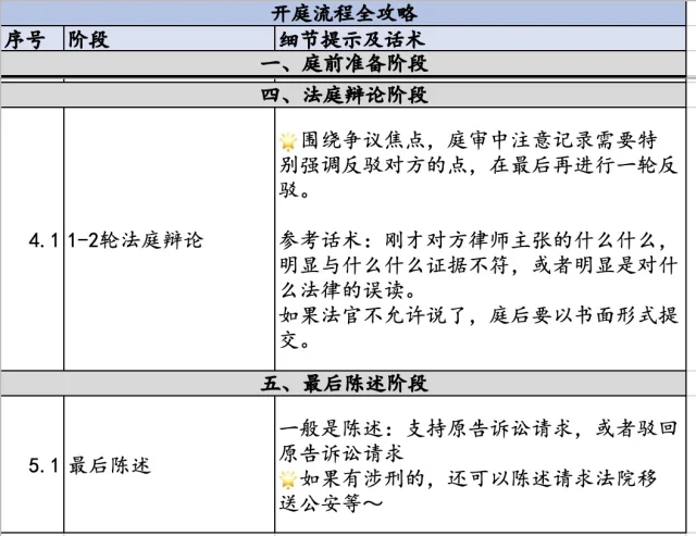 🌟庭审中注意记录需要特别强调反驳对方的点,在最后再进行一轮反驳。