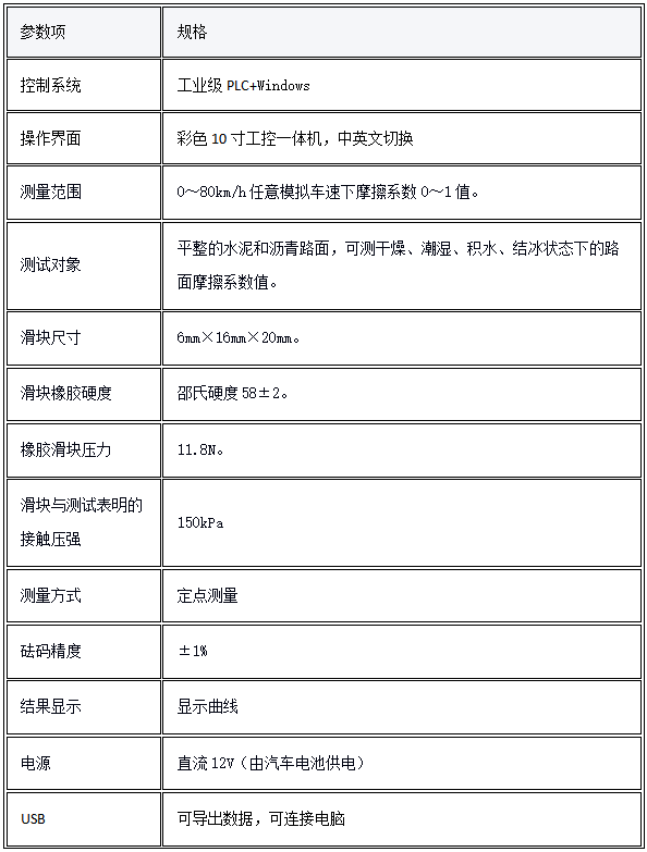 道路动态旋转式摩擦系数测定仪是一套操作简单、便于携带的设备,用来测定在两个滑动接触表面上的动态摩擦系数,配有微机测量系统,可在测量操作的同时以图形形式记录全过程的数据。