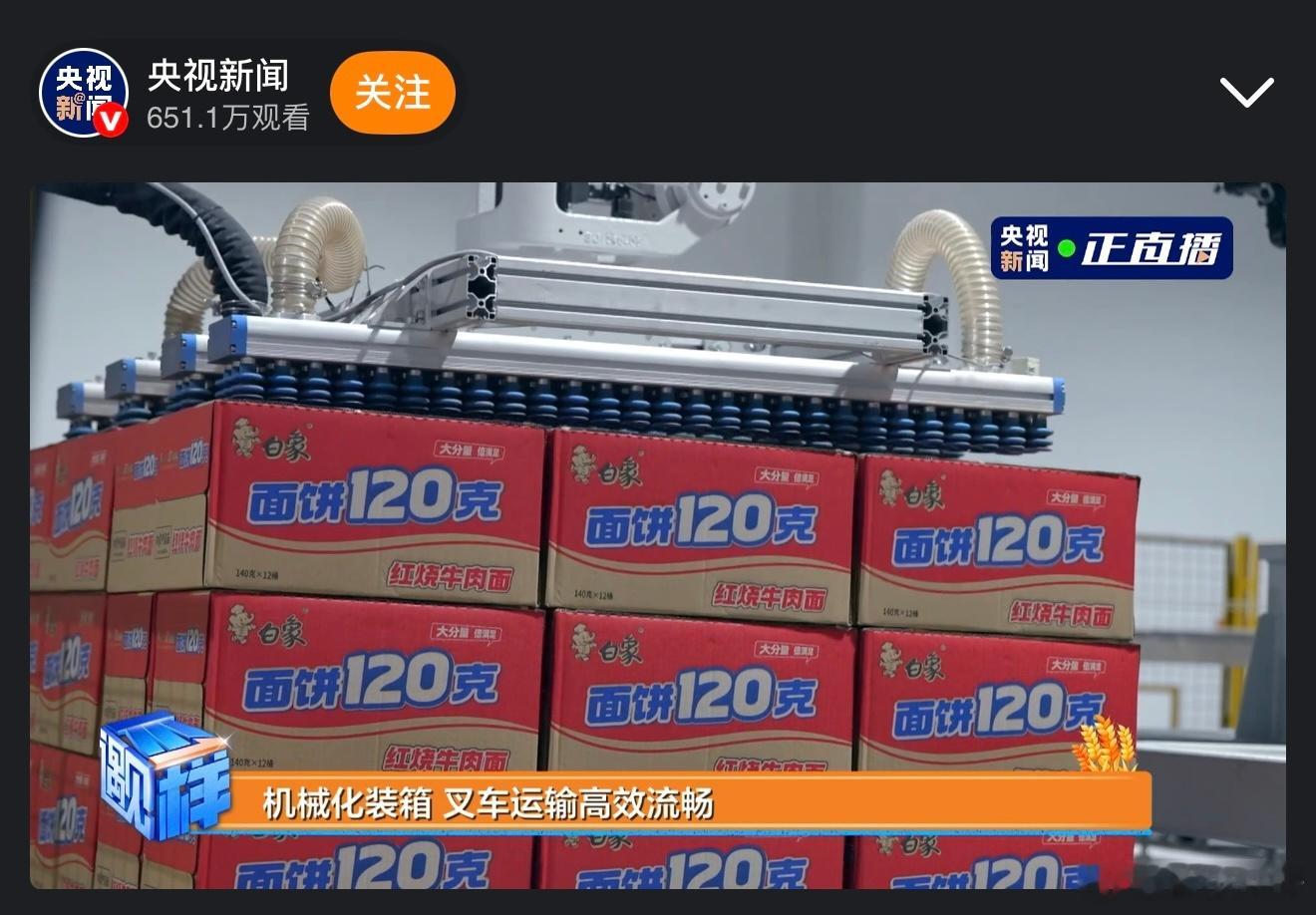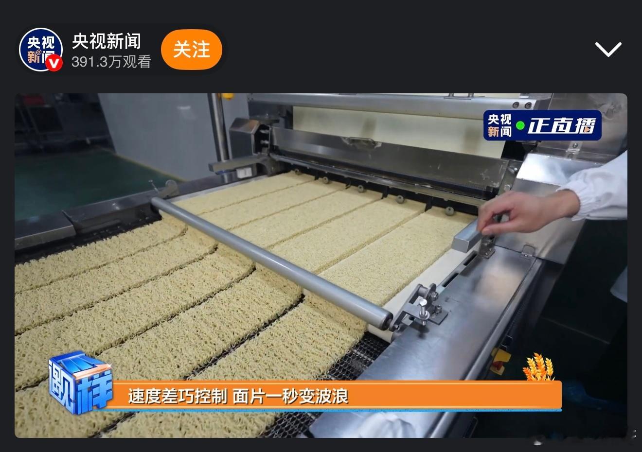 看了生产过程才知道原来面饼的形状对口感也有差别,不得不说白象在做方便面这一块是真的用心对待!真材实料,吃的放心~白象一日厂长撒贝宁在线查岗