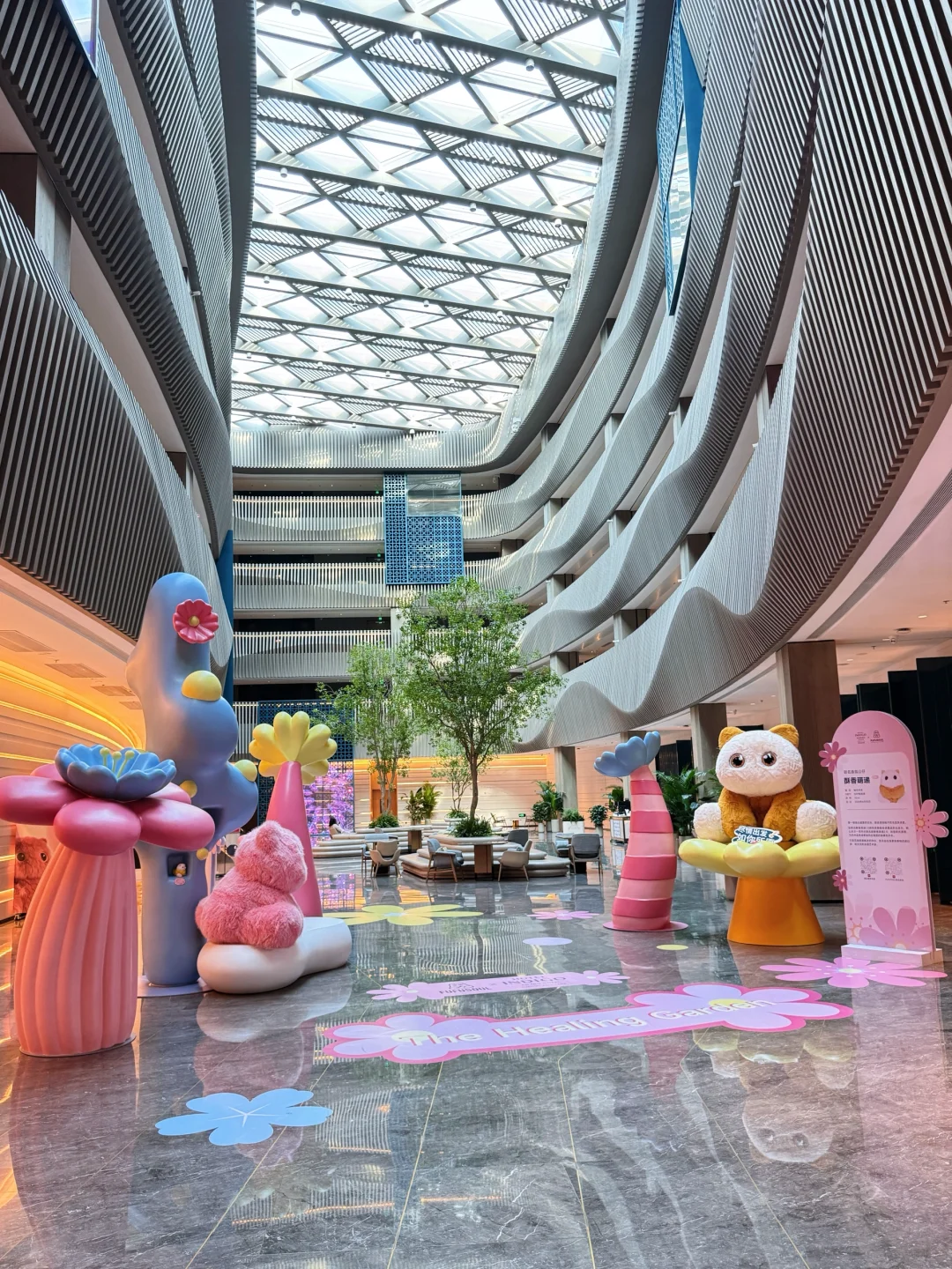 👉设计惊艳:大堂以“摩天轮”为灵感,穹顶如钻石切面折射光影,大堂是蓝色园林窗花再结合现代LED屏+未来感波浪线条,真·苏式赛博朋克!艺术品《时光之海》像一滴湖水悬空,瞬间代入江南科幻片。