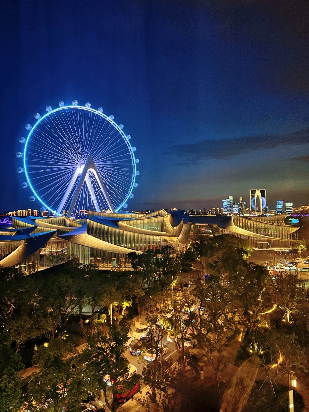 🩵景观C位:我入住的7楼客房正对摩天轮,落地窗无遮挡;当然,每一层都有不同的视角与体验——比如2楼就有超惬意的露台景观,适合坐看湖景发呆,也是我下次想试的房型!