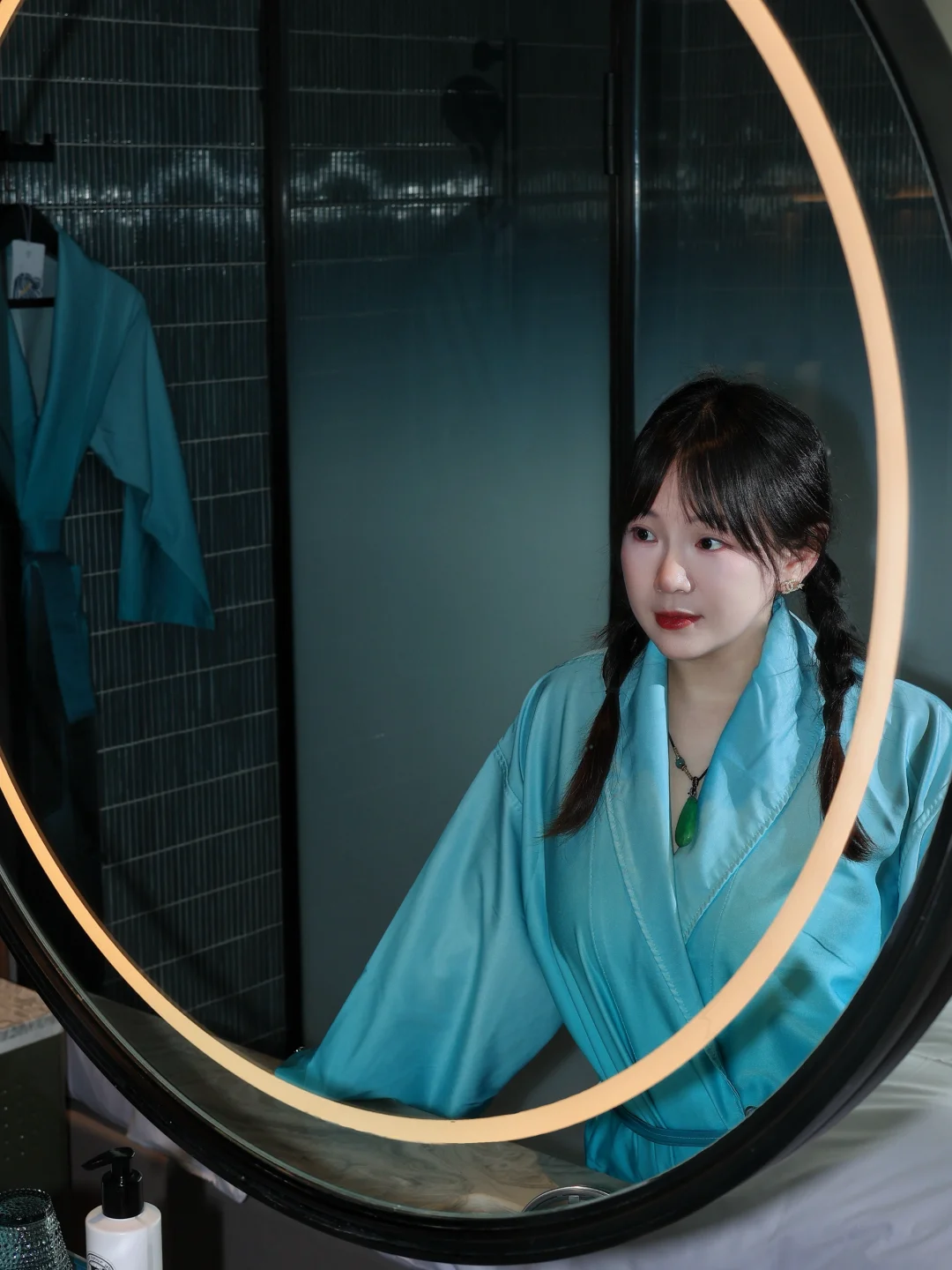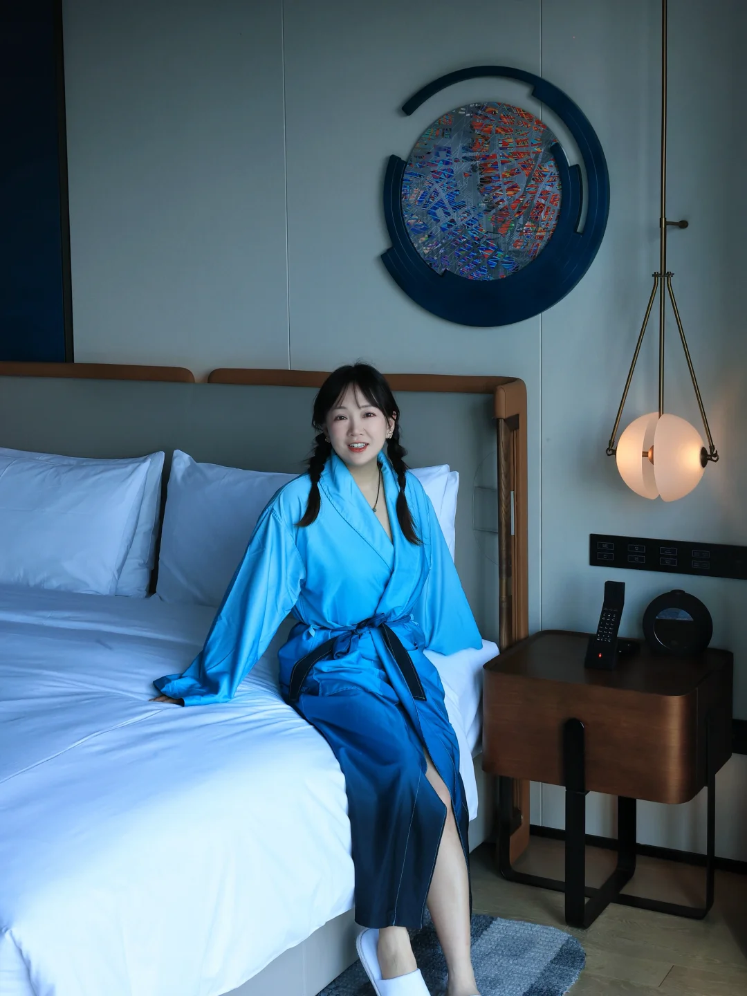 🩵房间内的渐变星蓝色浴袍泛珠光,触感滑糯,穿上秒变姑苏闺秀;