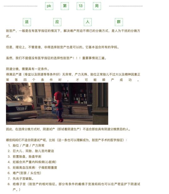 在选择范围方面,阴道分娩不一定适合每一个孕妈。Jojo需要再次特别指出的是,并不是我们妇产科医生要求每一位准妈妈选择阴道试产,我们希望的是您选择最适合您自己情况的分娩方式!!!但是,一旦你有选择阴道分娩机会时候,Jojo还是推荐你首选阴道试产的。毕竟经过这十来轮的大PK,阴道分娩的优势还是遥遥领先的。需要特别指出的是,出于安全考虑,不能够在节假日、夜间急诊班等时间段,要求没有医学指征的选择性剖宫产(即:本来可以阴道试产,有可能顺产下来的孕妇偏偏要求剖宫产分娩)。